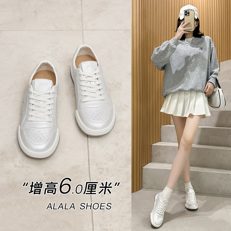 真皮内增高小白鞋女2026春季新款显脚小百搭休闲厚底板鞋轻便女鞋