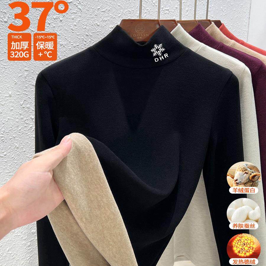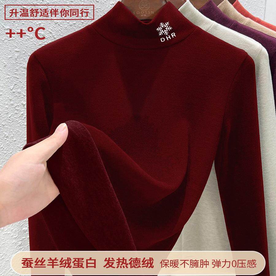 高级感真德绒高领打底衫女25新款秋冬加绒加厚洋气可外穿保暖上衣