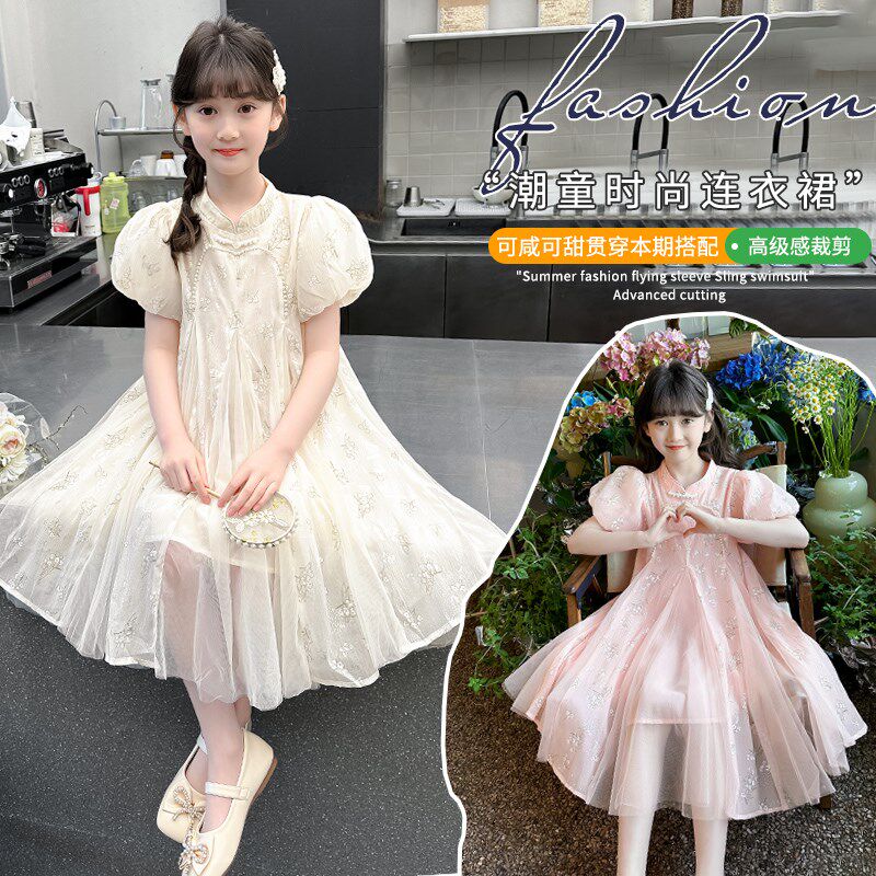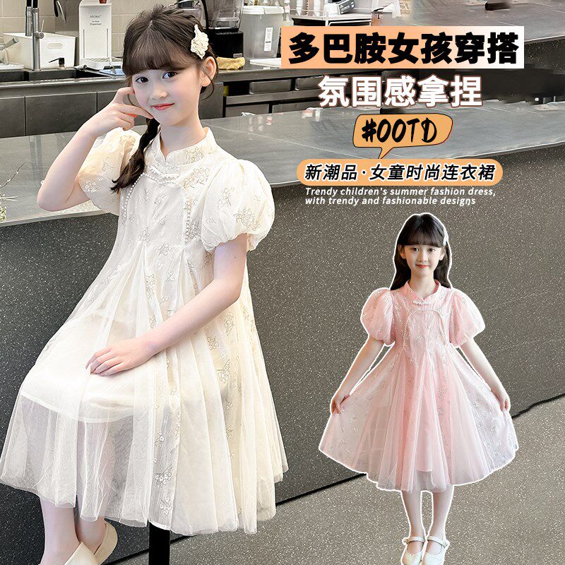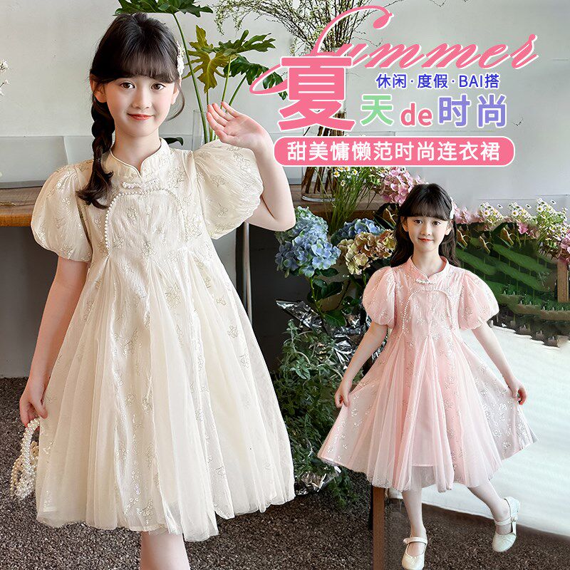 女童裙子夏季2025新款夏装女孩公主裙儿童国风连衣裙女大童旗袍夏