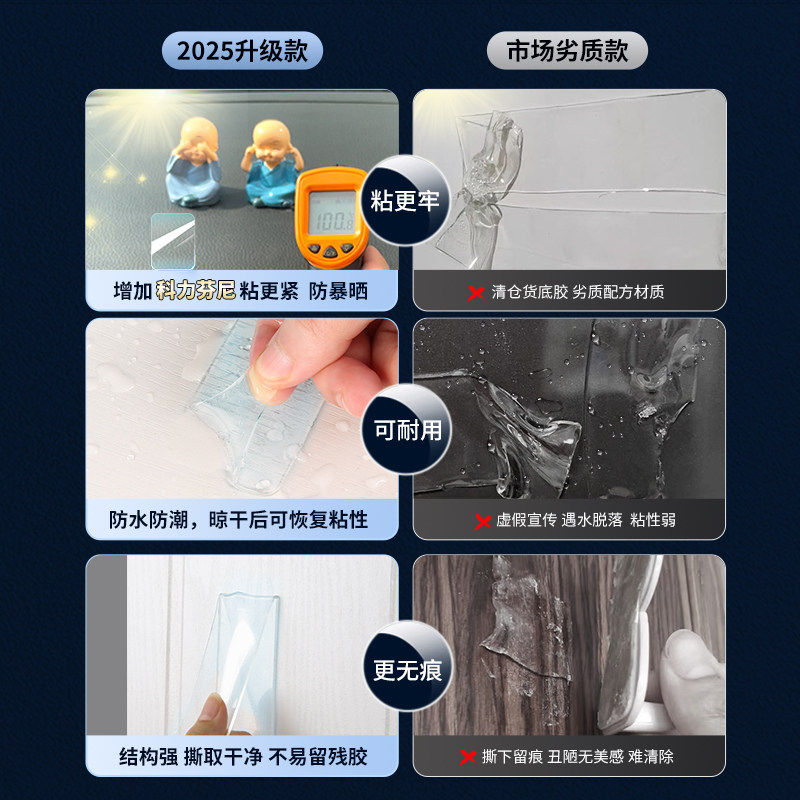 纳米强力双面胶高粘度墙面贴墙不留痕固定胶贴汽车专用透明无痕防水耐高温双面贴亚克力胶带万能胶粘贴贴片