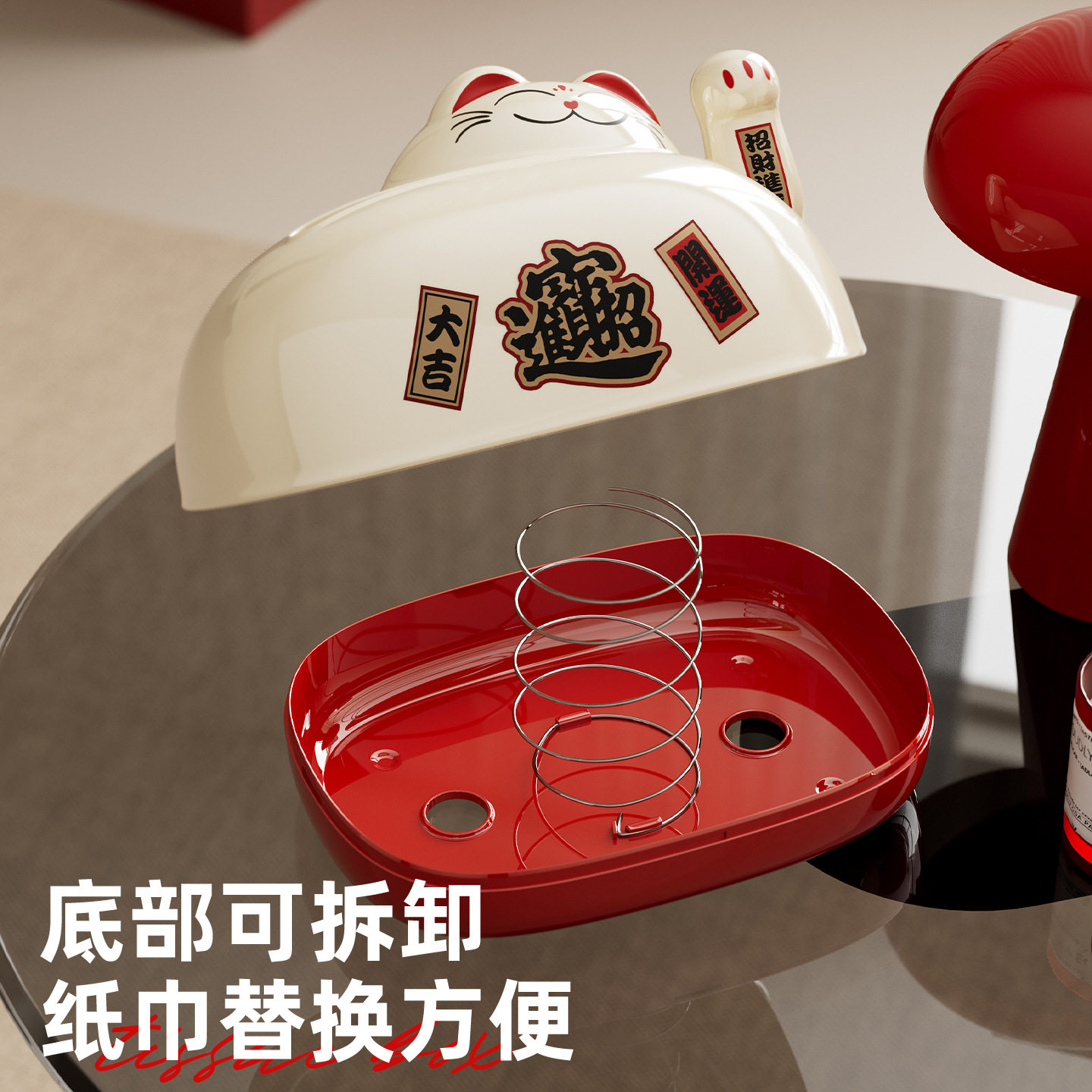 招财猫纸巾盒高颜值客厅桌面纸抽盒店铺前台创意摆件摇手式抽纸盒