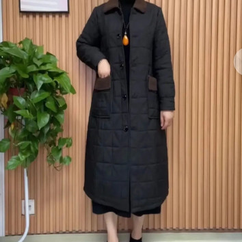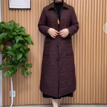 冬季新款气质减龄保暖夹棉中长款外套女款毛领宽松显瘦过膝棉大衣