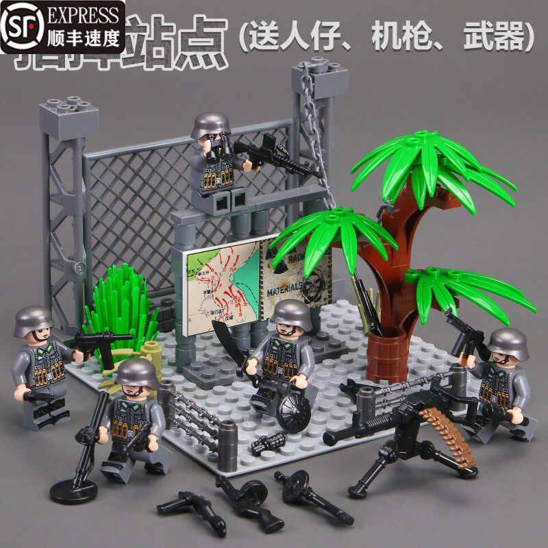 兼容乐高积木玩具军事基地机枪哨岗碉堡战壕瞭望哨塔指挥哨站拼装