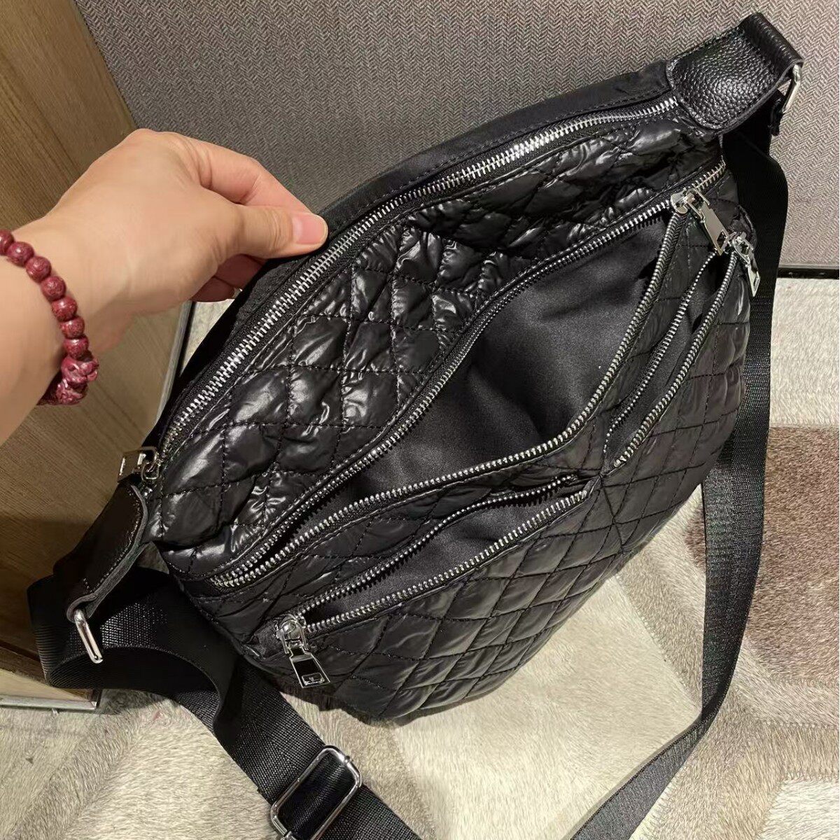 日本高品质多隔层充棉菱格休闲斜挎包大容量休闲实用女包妈妈包