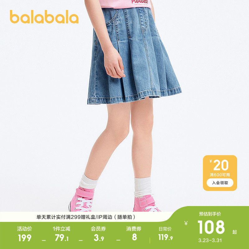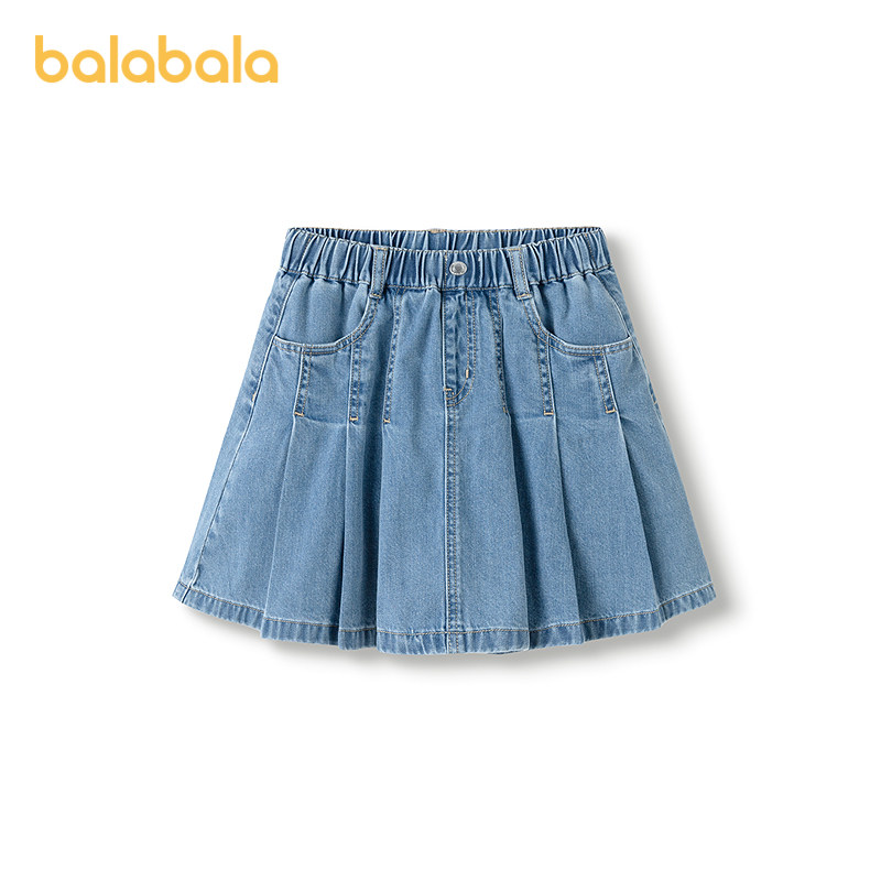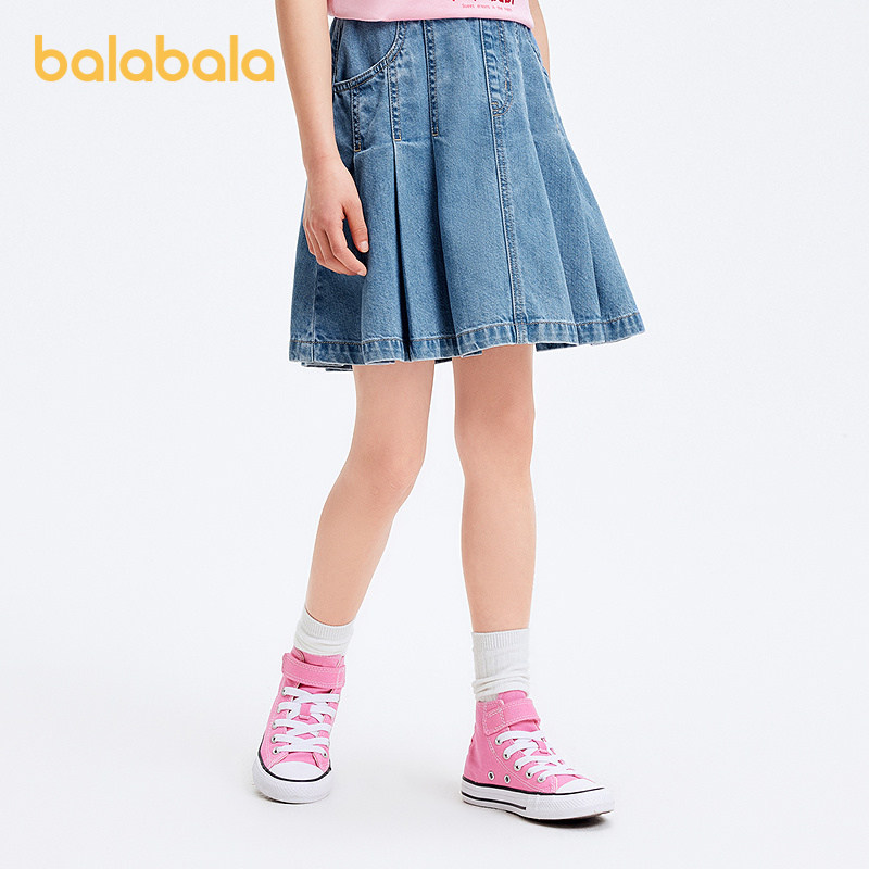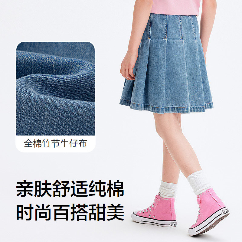 巴拉巴拉童装儿童牛仔裙子女童夏装半身裙百搭百褶裙大童纯棉甜美
