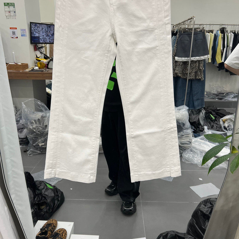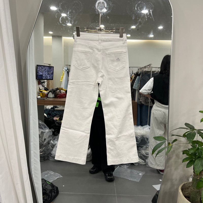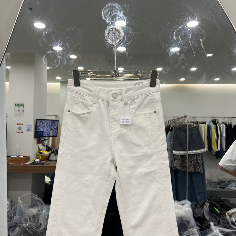 欧洲站2026春季新款时尚高腰白色直筒牛仔裤女修身显瘦微喇裤