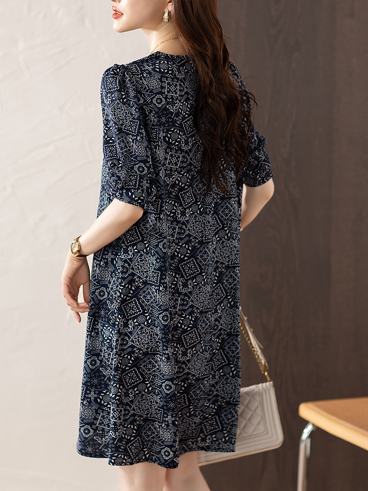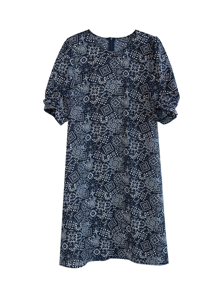 九月陌墨复古碎花连衣裙胖mm圆领减龄娃娃裙女2024新款夏季欧洲站