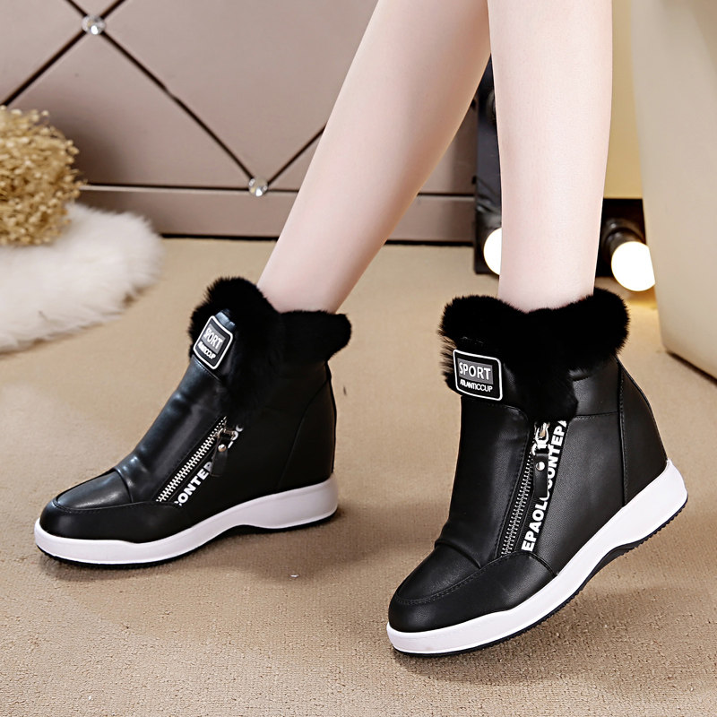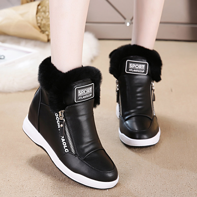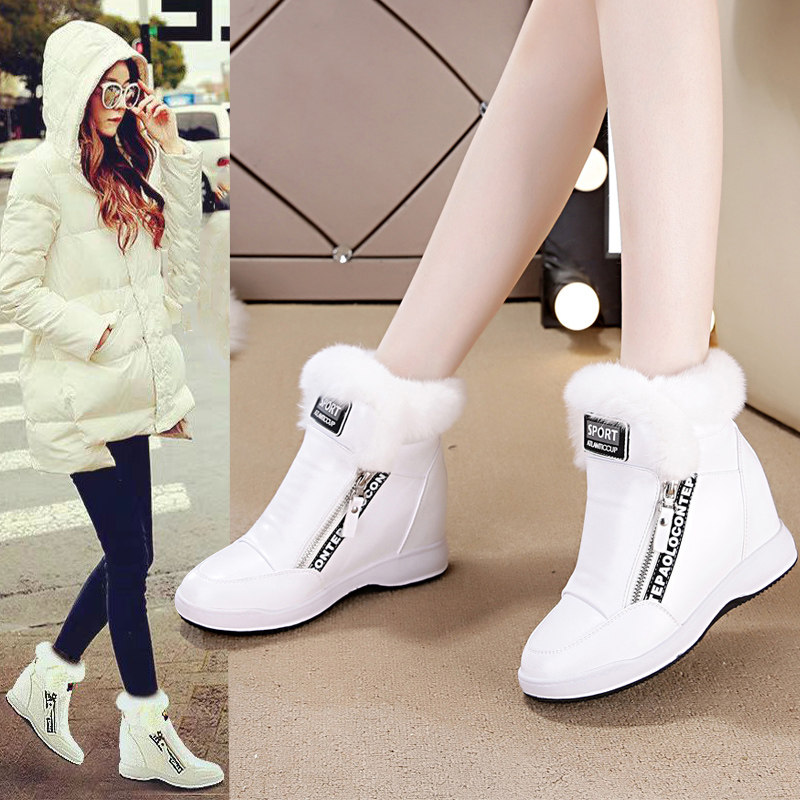 白色加绒加厚雪地靴女冬季百搭中筒短靴内增高毛毛鞋防水保暖棉鞋