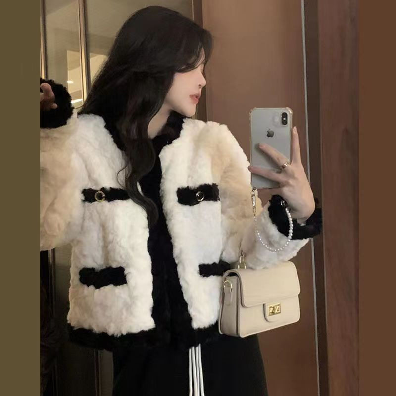 2026春夏新款棉服加厚小香风羊羔毛外套女款毛茸茸短款毛毛上衣