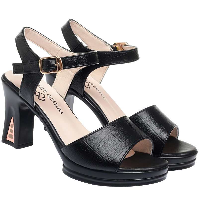 一字扣粗跟凉鞋女新款时装女鞋夏季百搭软底高跟鞋中年妈妈鞋
