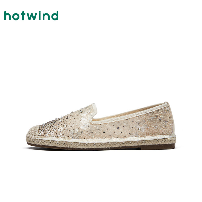 热风平底渔夫鞋女款2025年夏季新款透气网面休闲鞋子杏色百搭女鞋