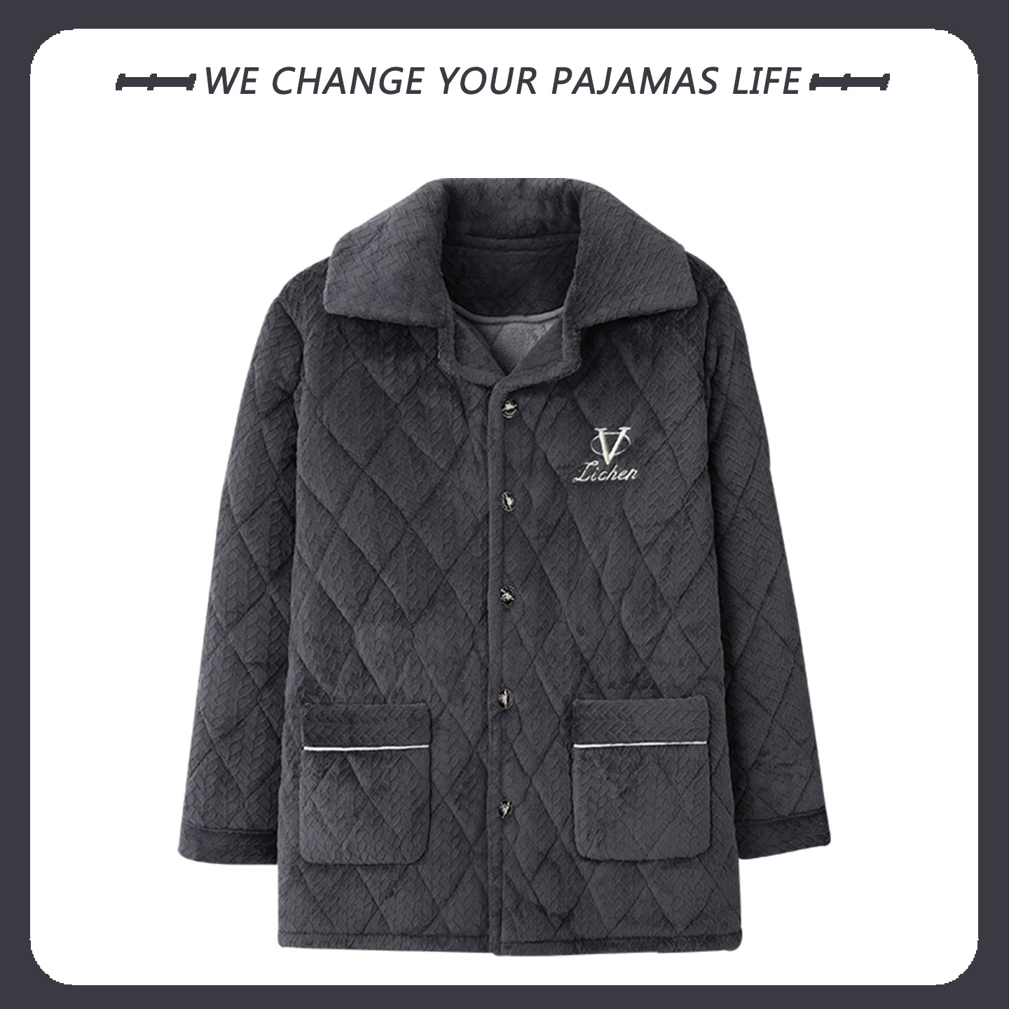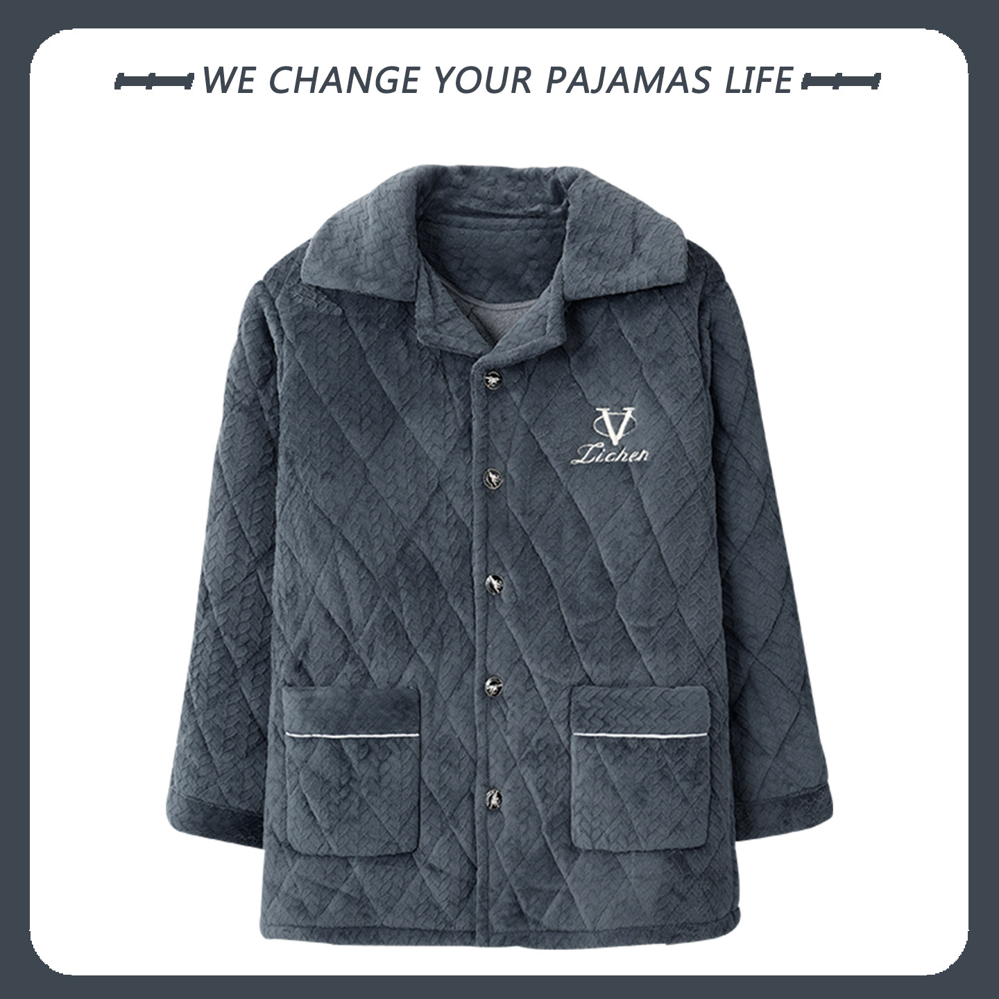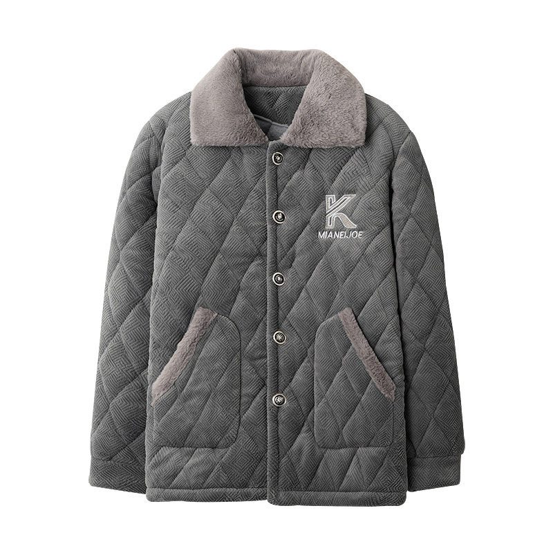 睡衣男士冬季蓄热加厚珊瑚绒三层夹棉袄青少年超厚家居服单件上衣