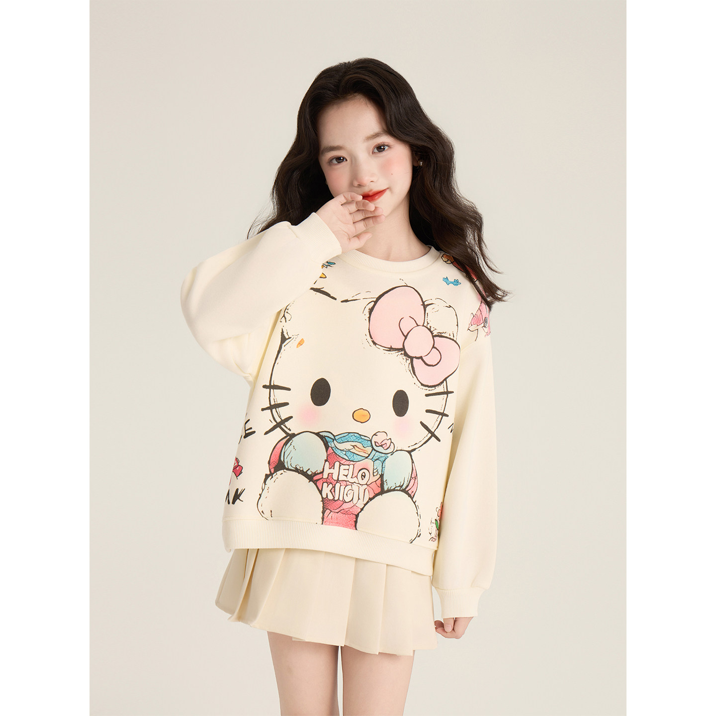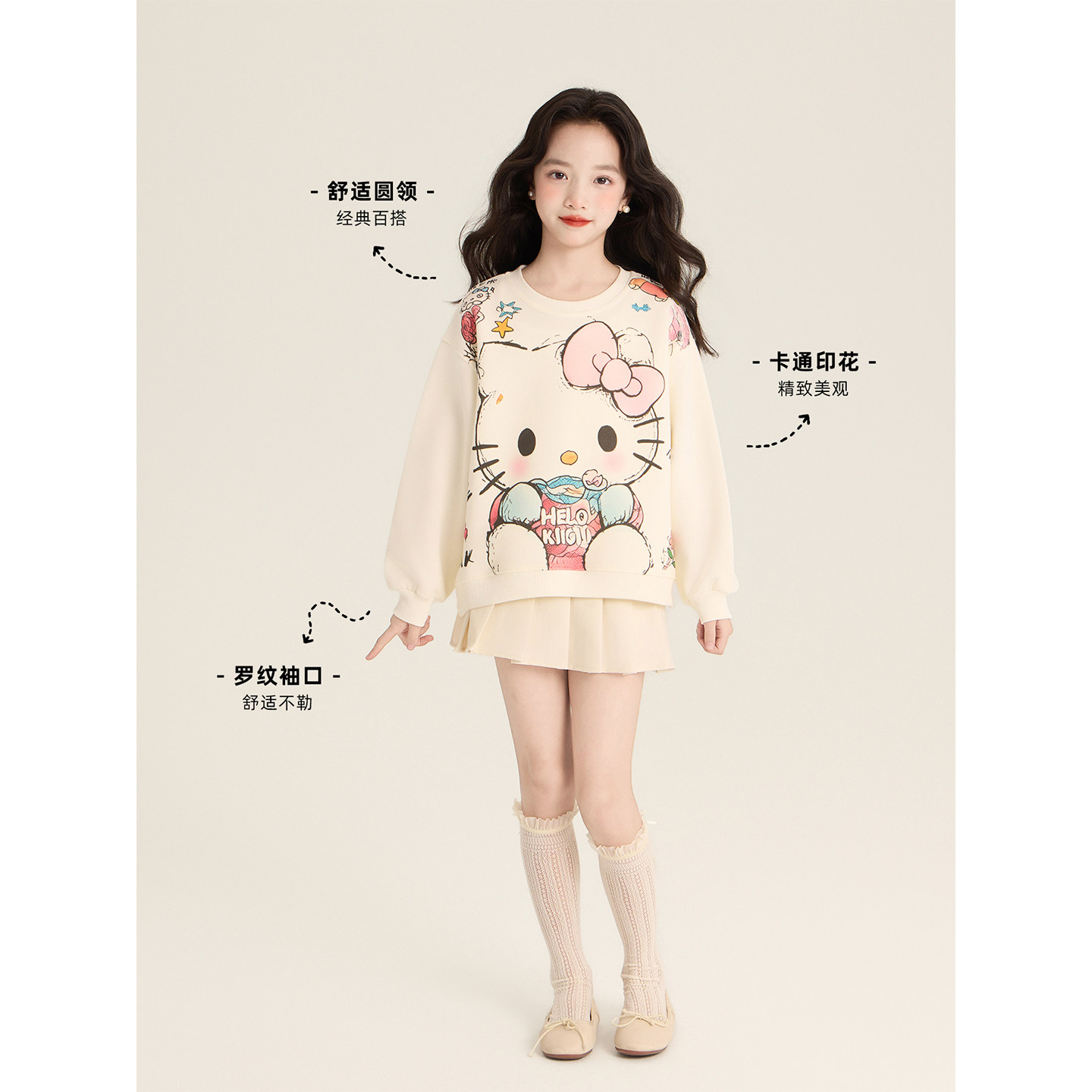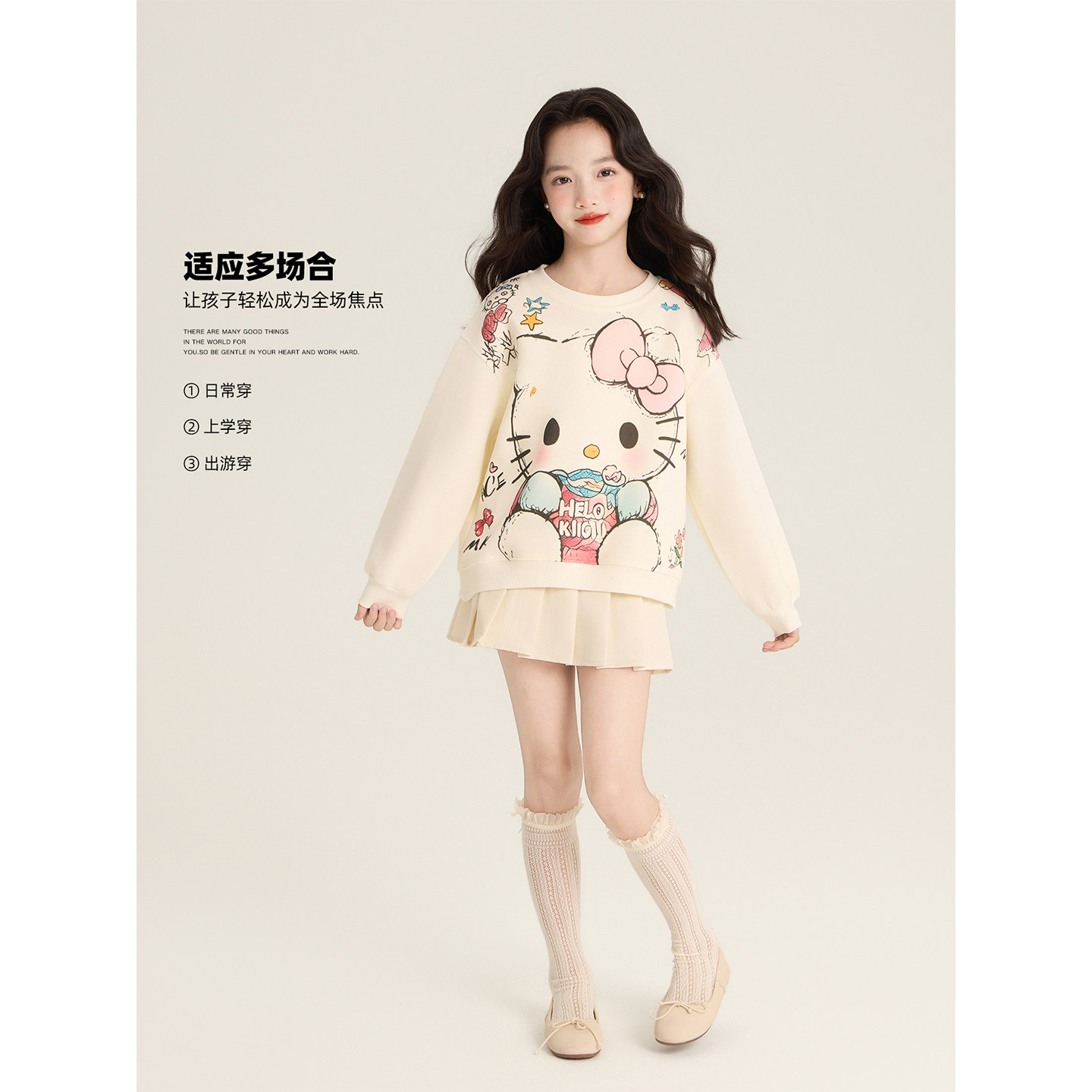 Amybaby女童上衣春季2026新款休闲可爱卡通印花宽松圆领卫衣
