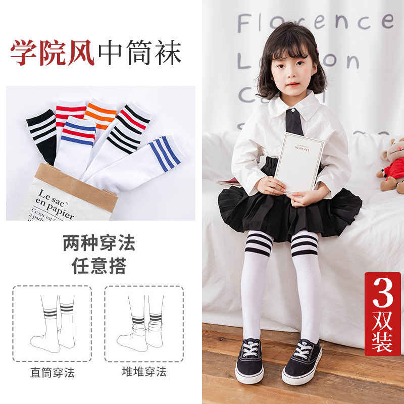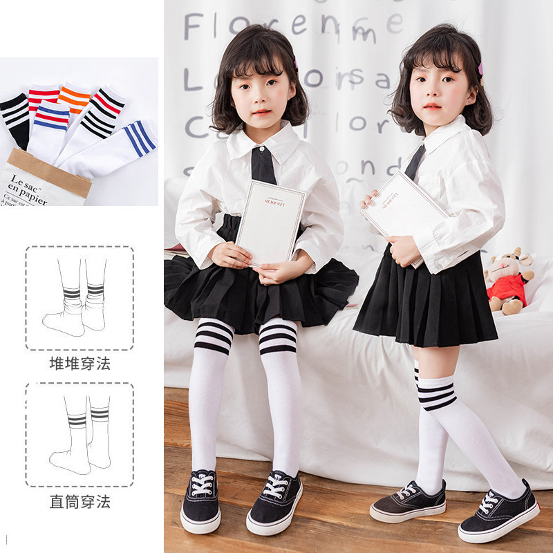儿童长筒袜春秋学生足球袜男童及膝小腿袜表演校服袜女童中筒袜子