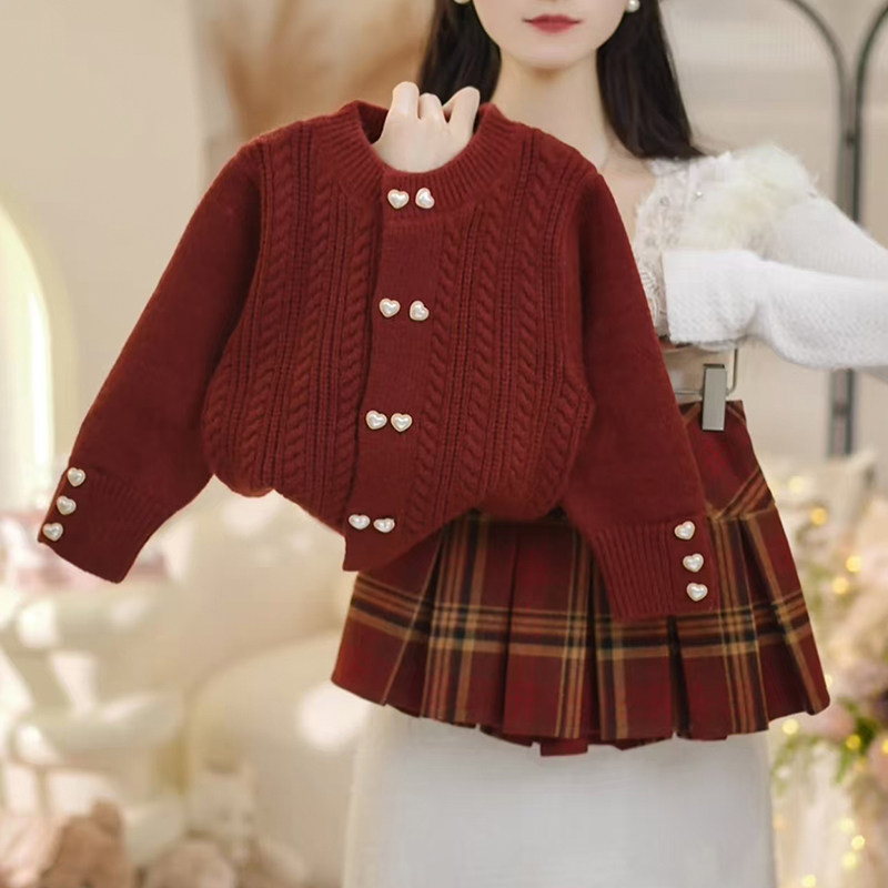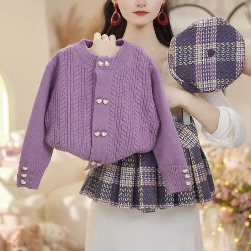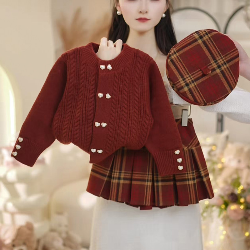女童冬装套装2026新款洋气儿童时髦针织百褶裙两件套女孩冬季衣服