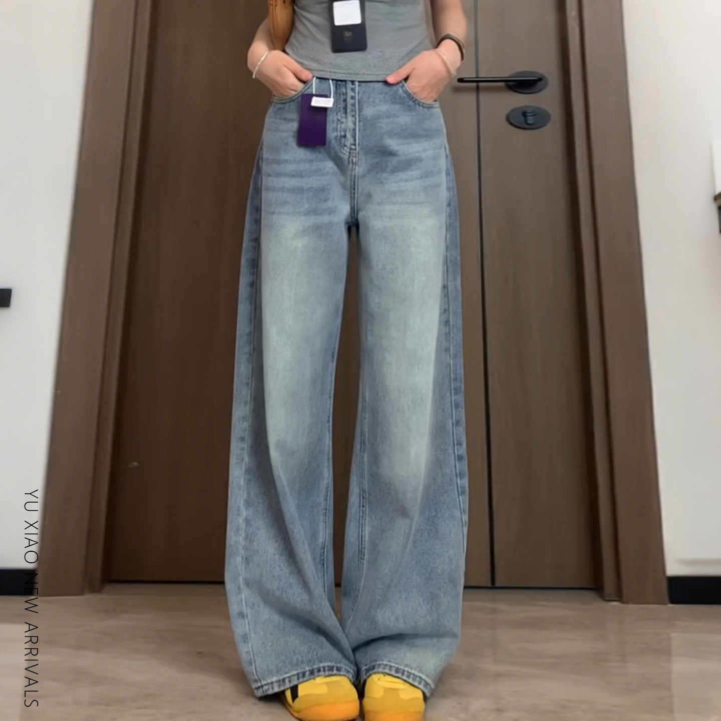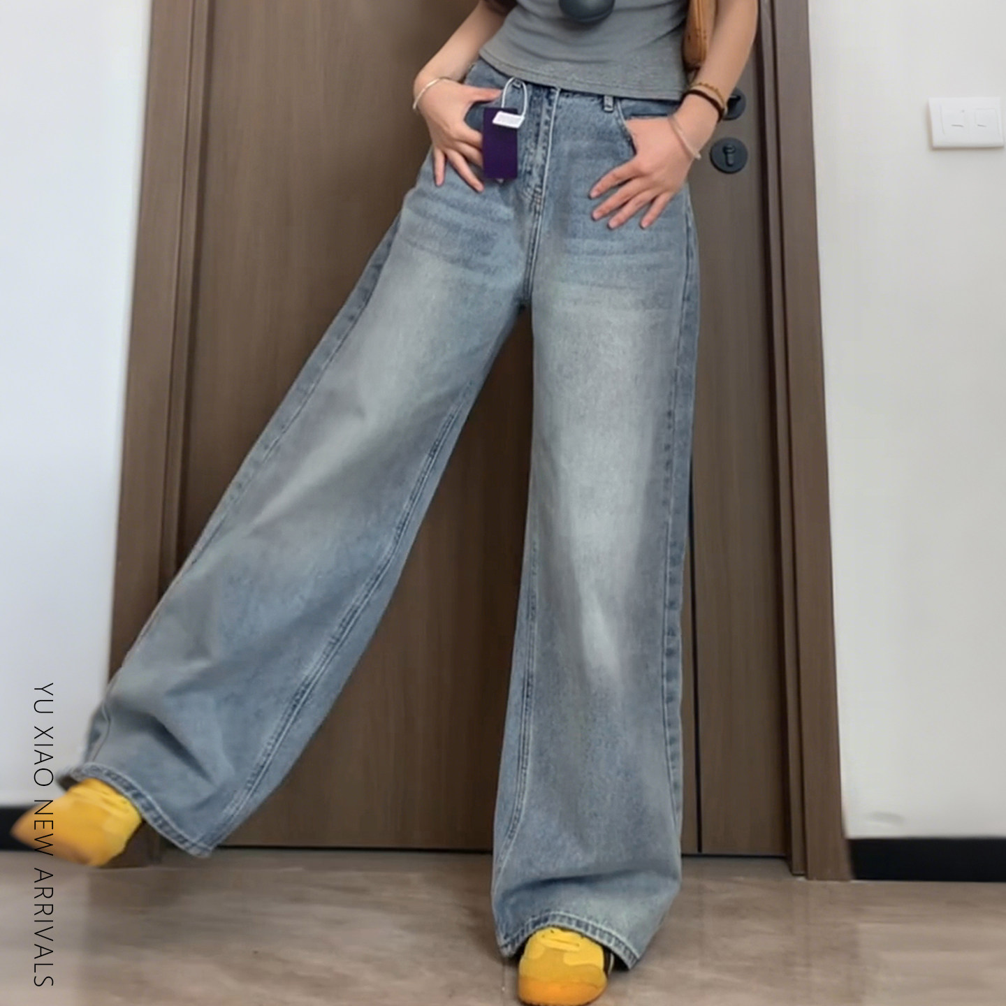浅色直筒牛仔裤阔腿宽松女款大码高腰显瘦牛仔直筒裤女裤子女款