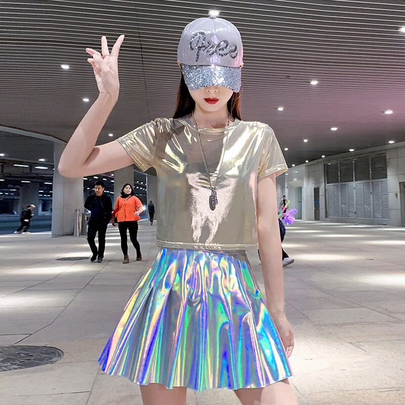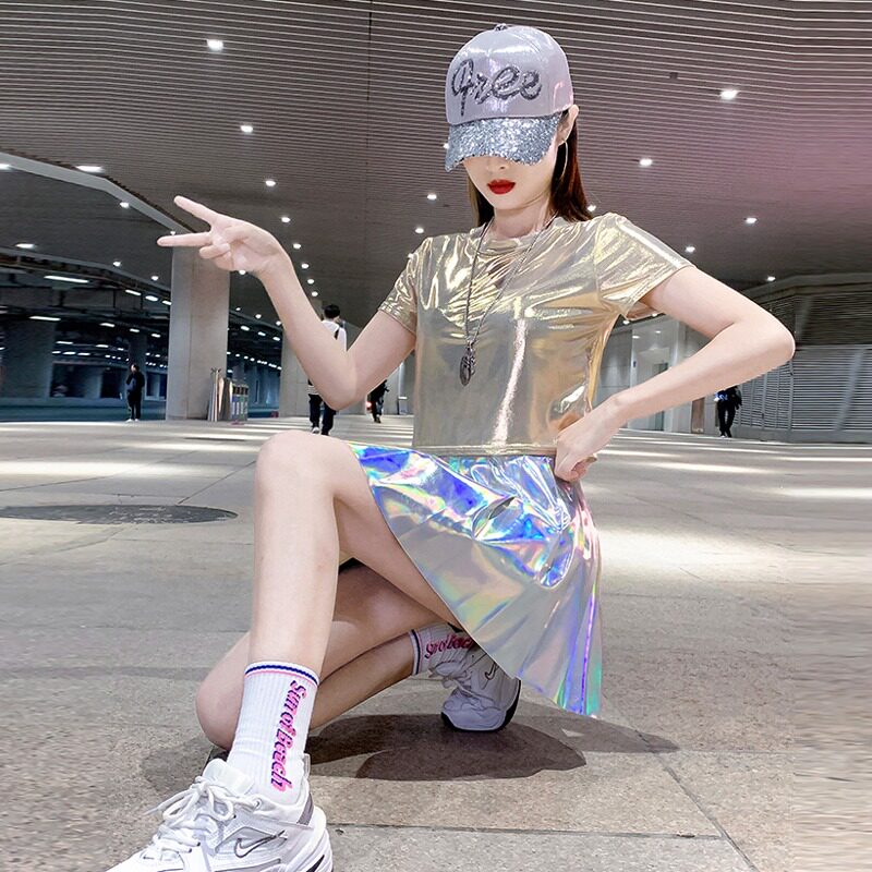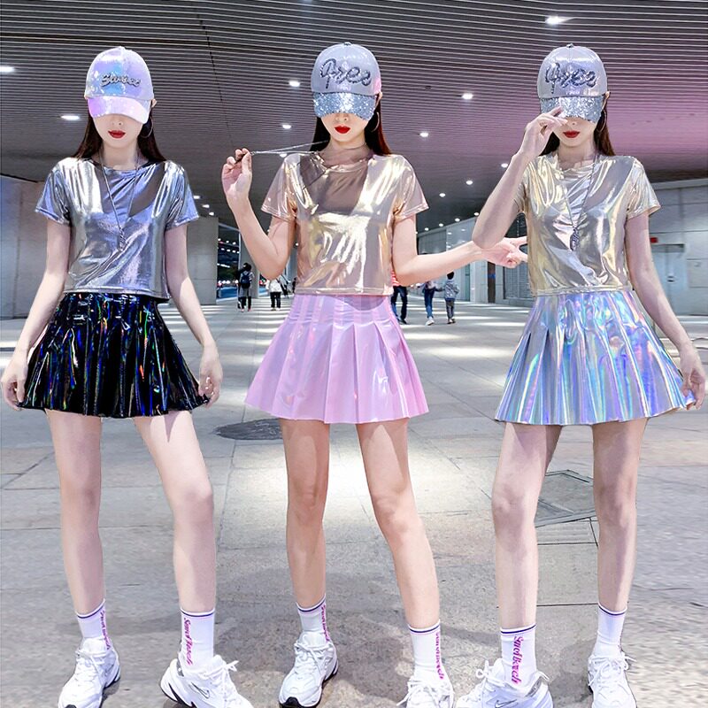 现代舞蹈服装女短袖学生亮片套装大拉拉队表演服成人爵士舞演出服