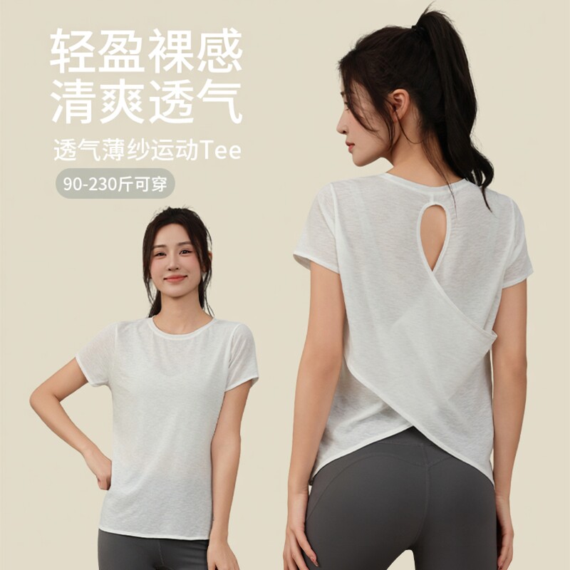 大码瑜伽服女上衣镂空美背胖mm运动短袖T恤专业普拉提训练健身服