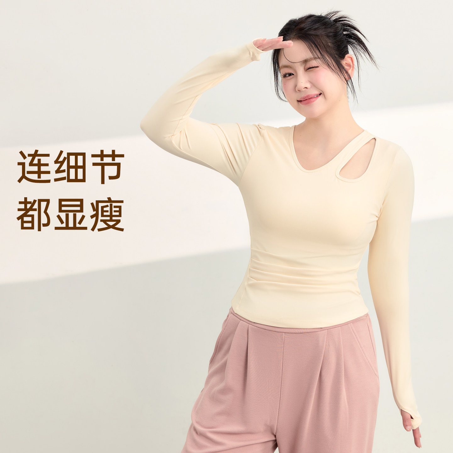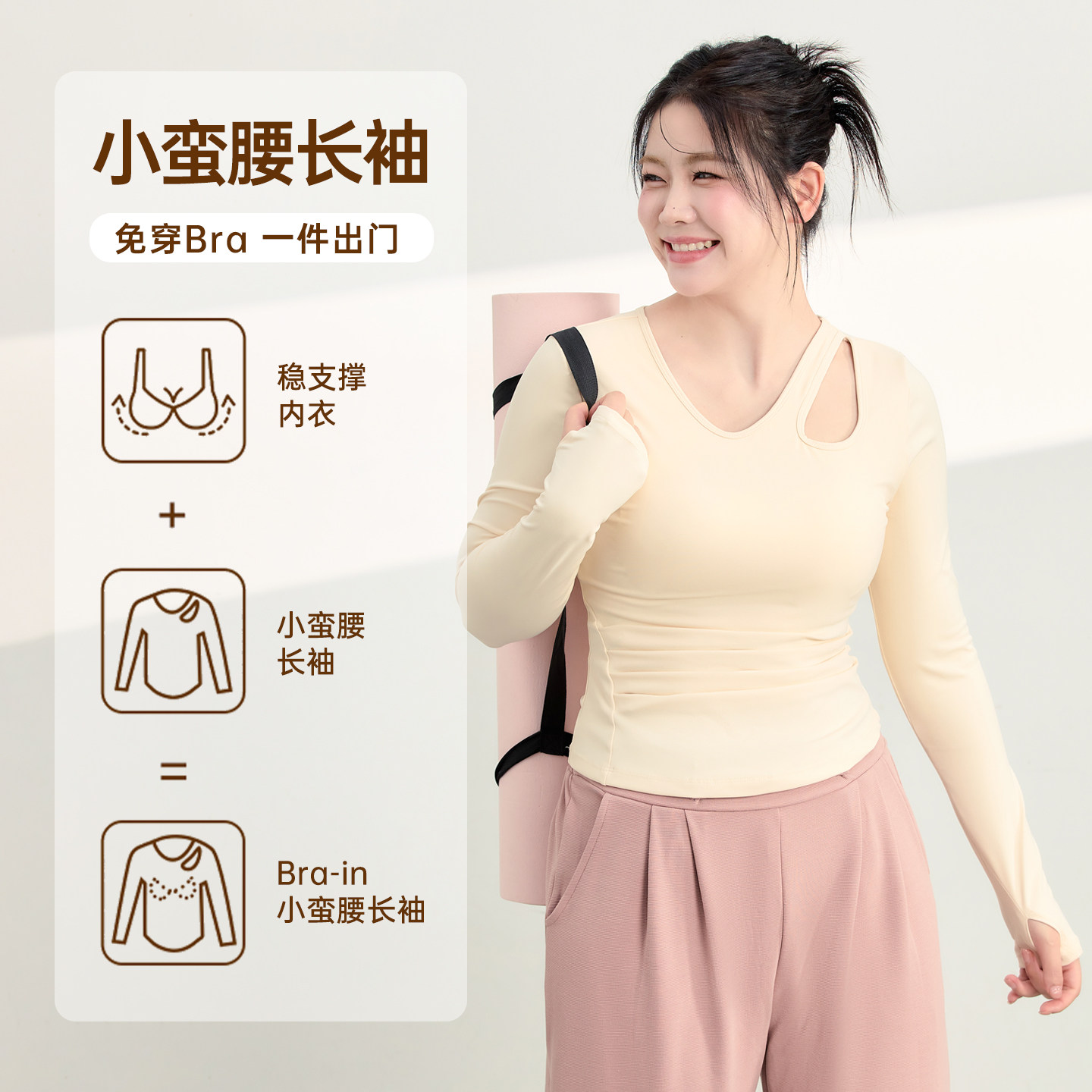 多肉女孩小蛮腰胖mm带胸垫大码瑜伽服女上衣运动健身长袖套装秋季