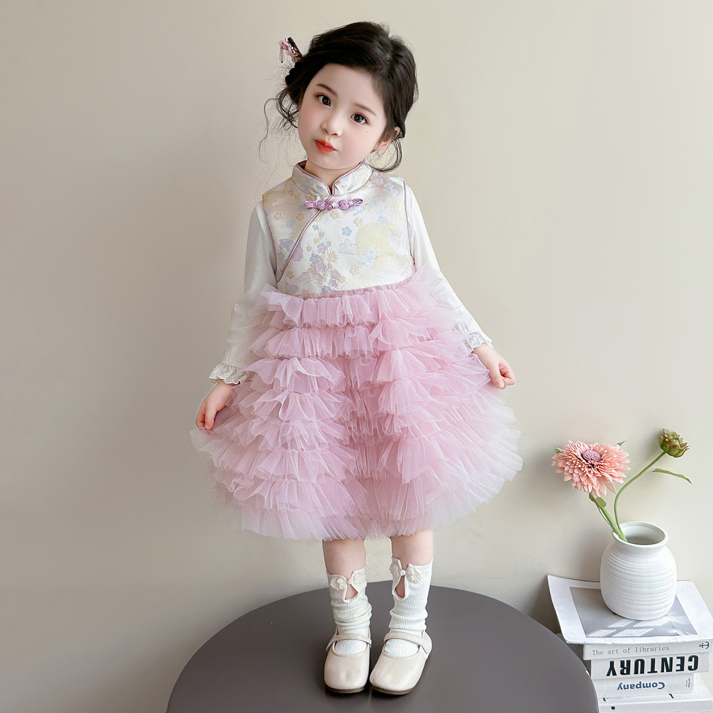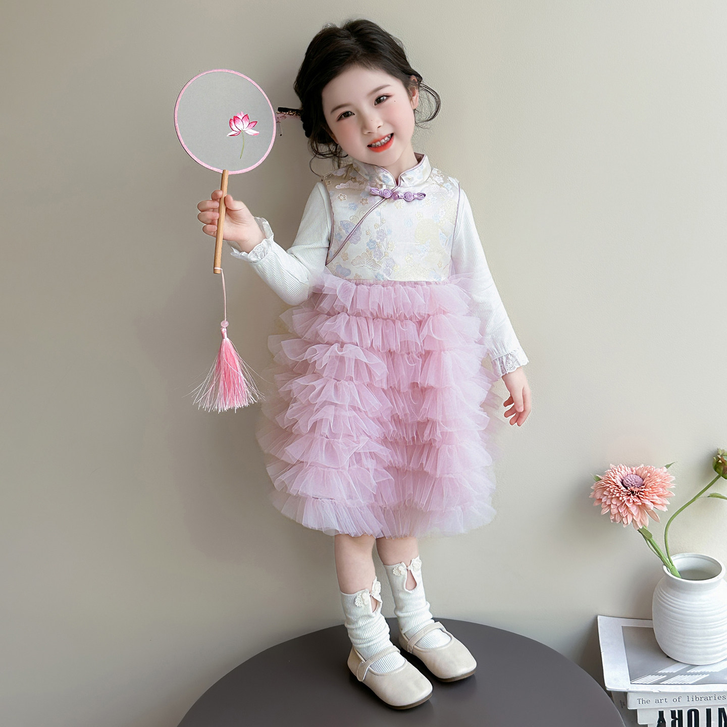 女童春秋中国风裙子春装2026新款儿童春季连衣裙套装女宝宝公主裙
