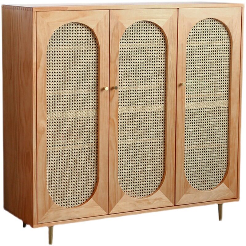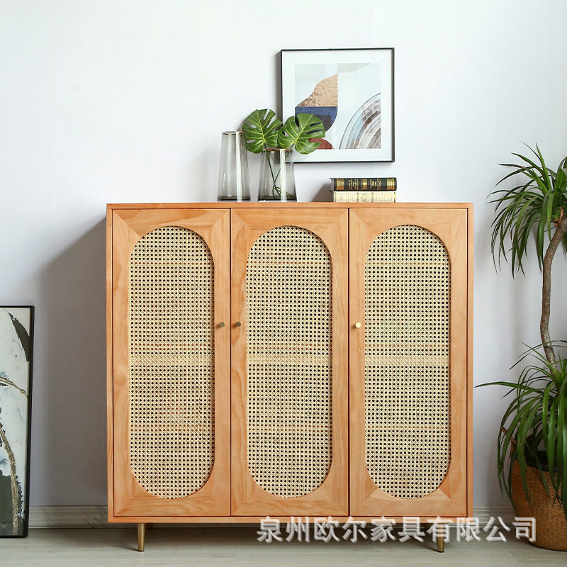 北欧实木鞋柜家用入户隔断玄关柜客厅藤编透气门厅柜开门储物柜