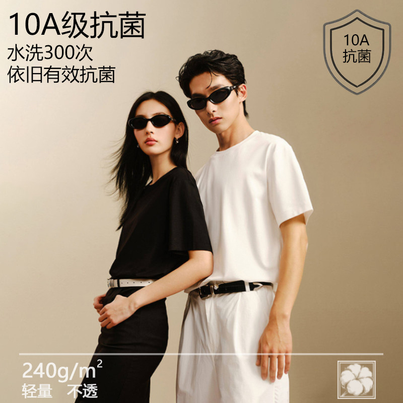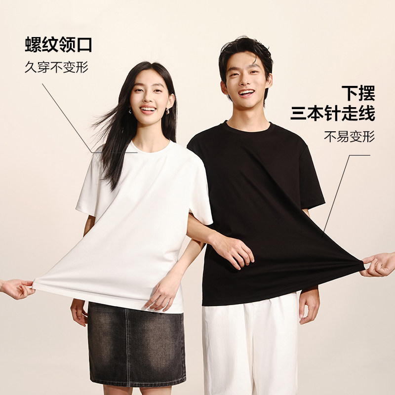 青少年女士男生2026新款高品质全棉短袖正肩三防t恤白黑色长绒棉