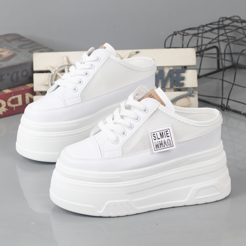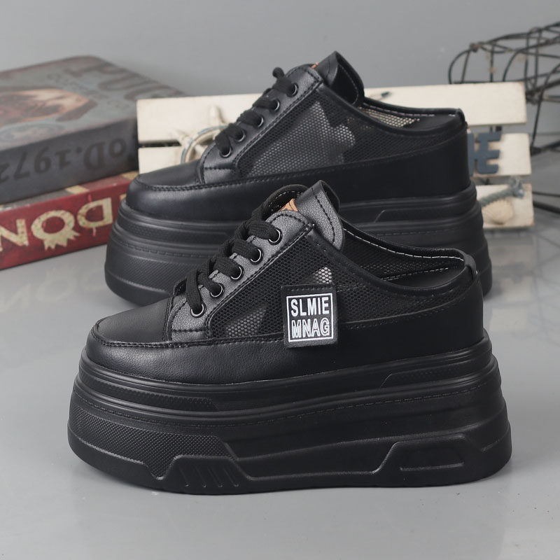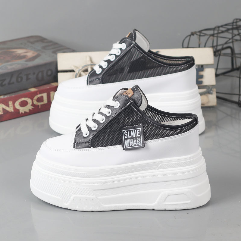 包头半拖鞋女2026新款外穿网面厚底增高10-12CM休闲一脚蹬无后跟