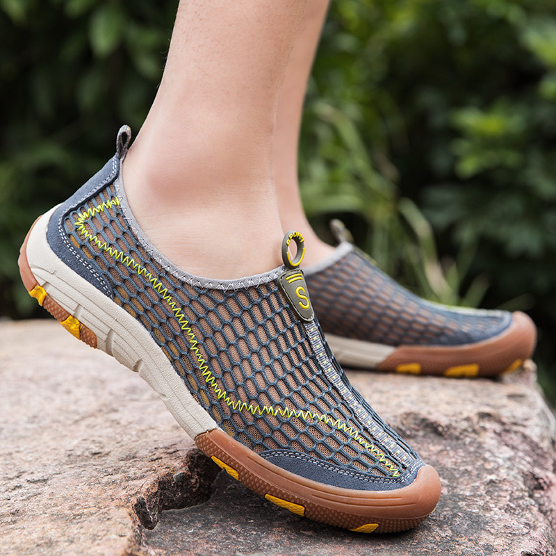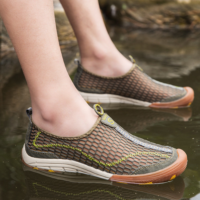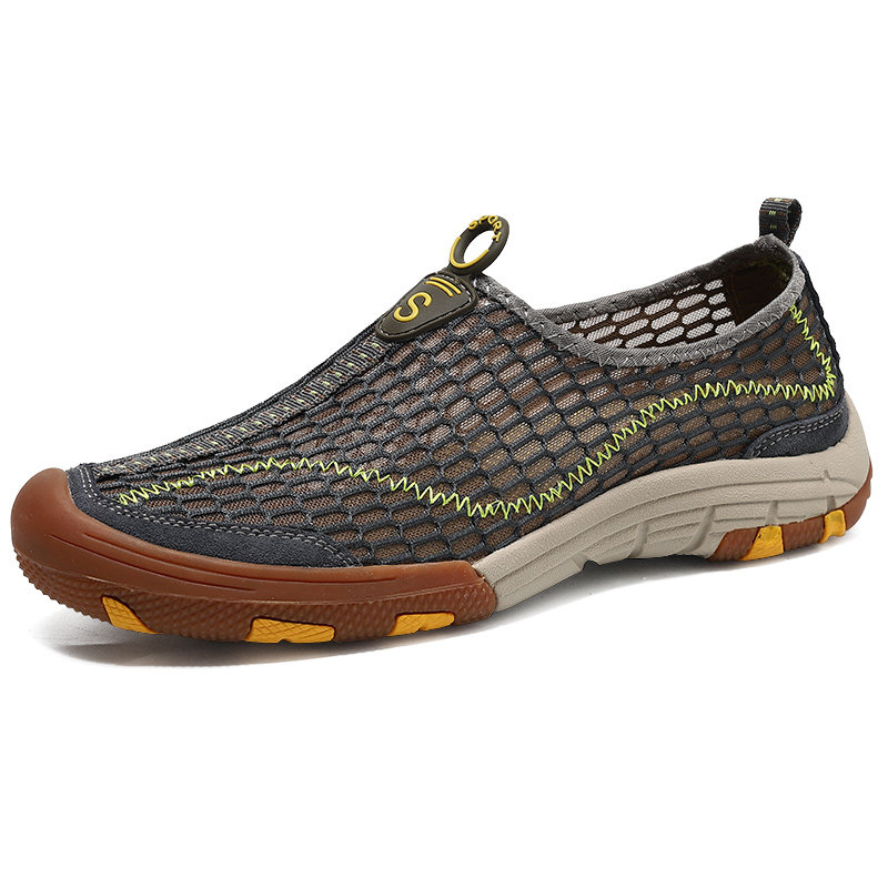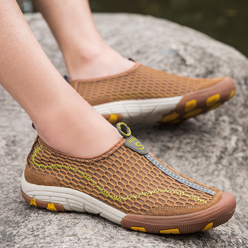 外贸出口男鞋夏季网面鞋男真皮透气运动休闲鞋薄款轻便网眼牛筋底