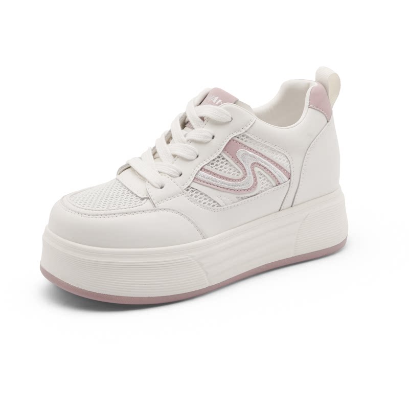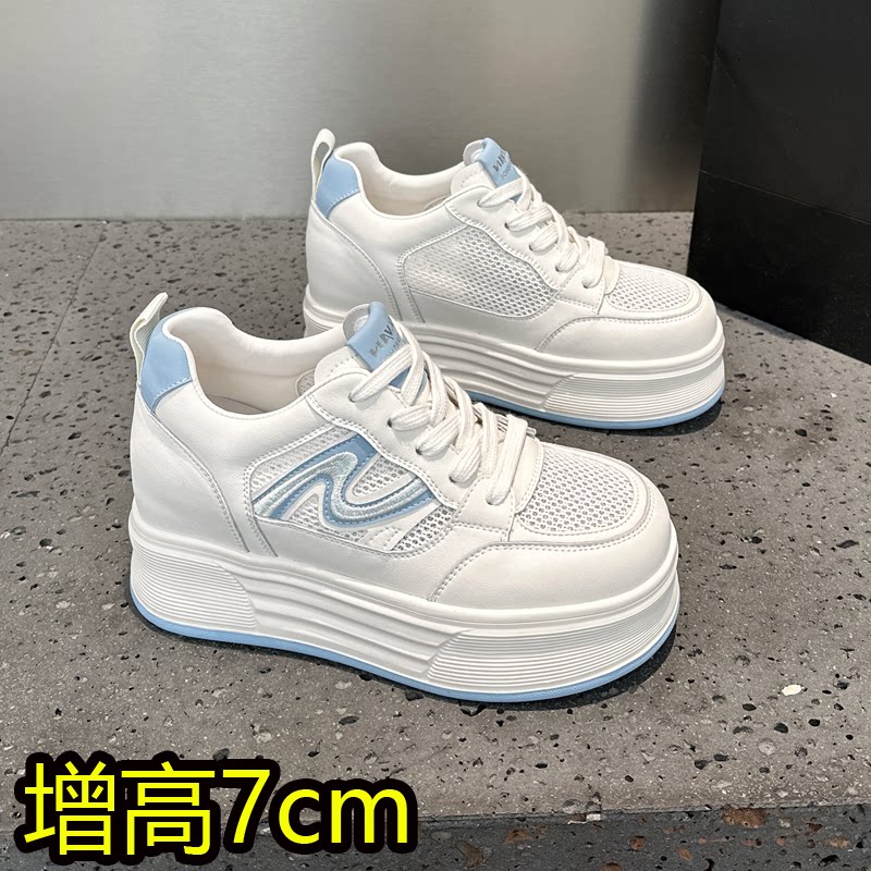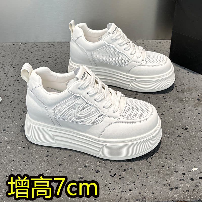 小白鞋女款2026新款网面透气春夏季休闲百搭板鞋内增高小个子厚底