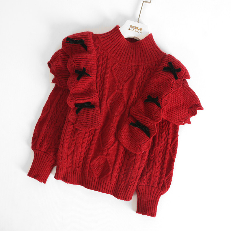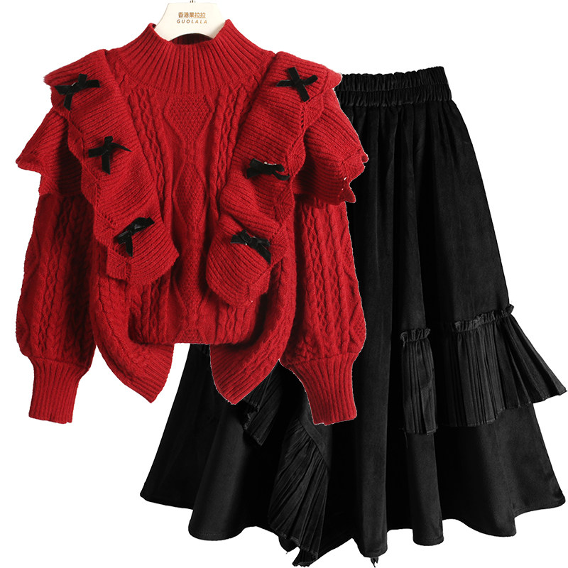 圣诞节女童红色毛衣套装裙子2025秋冬新款小女孩丝绒半身裙两件套