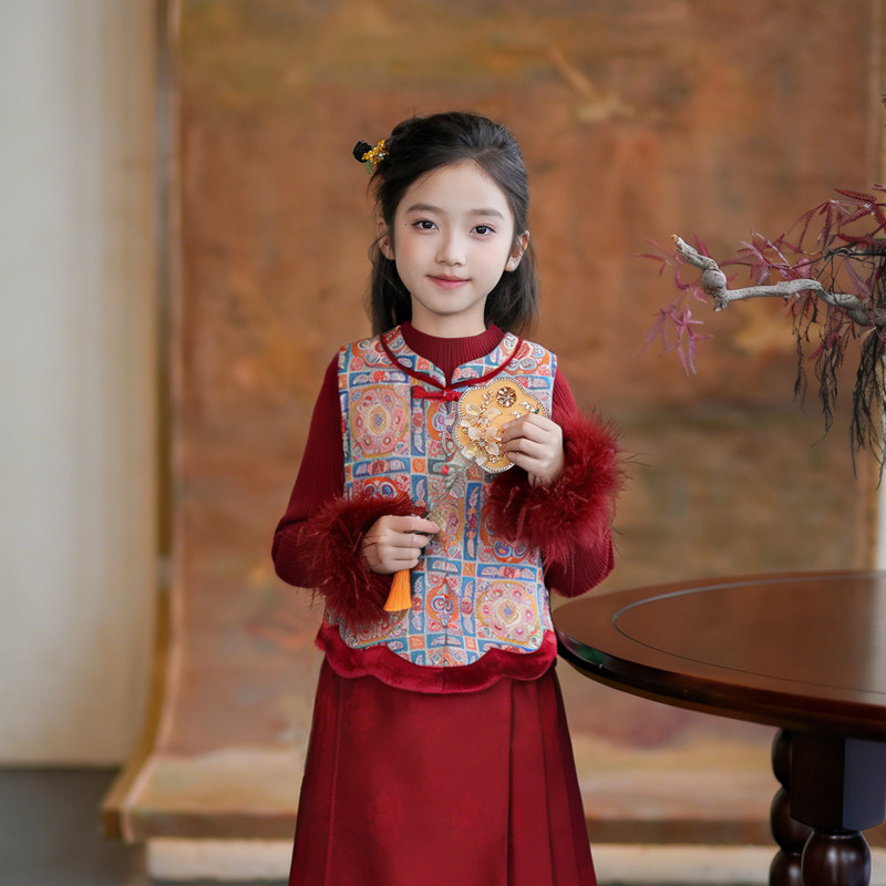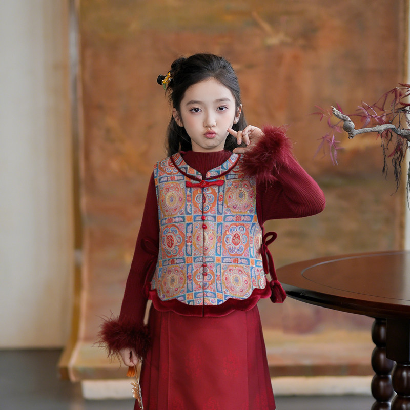 54002女童新年装马甲背心汉服马面裙2026春季款儿童中国风过年服