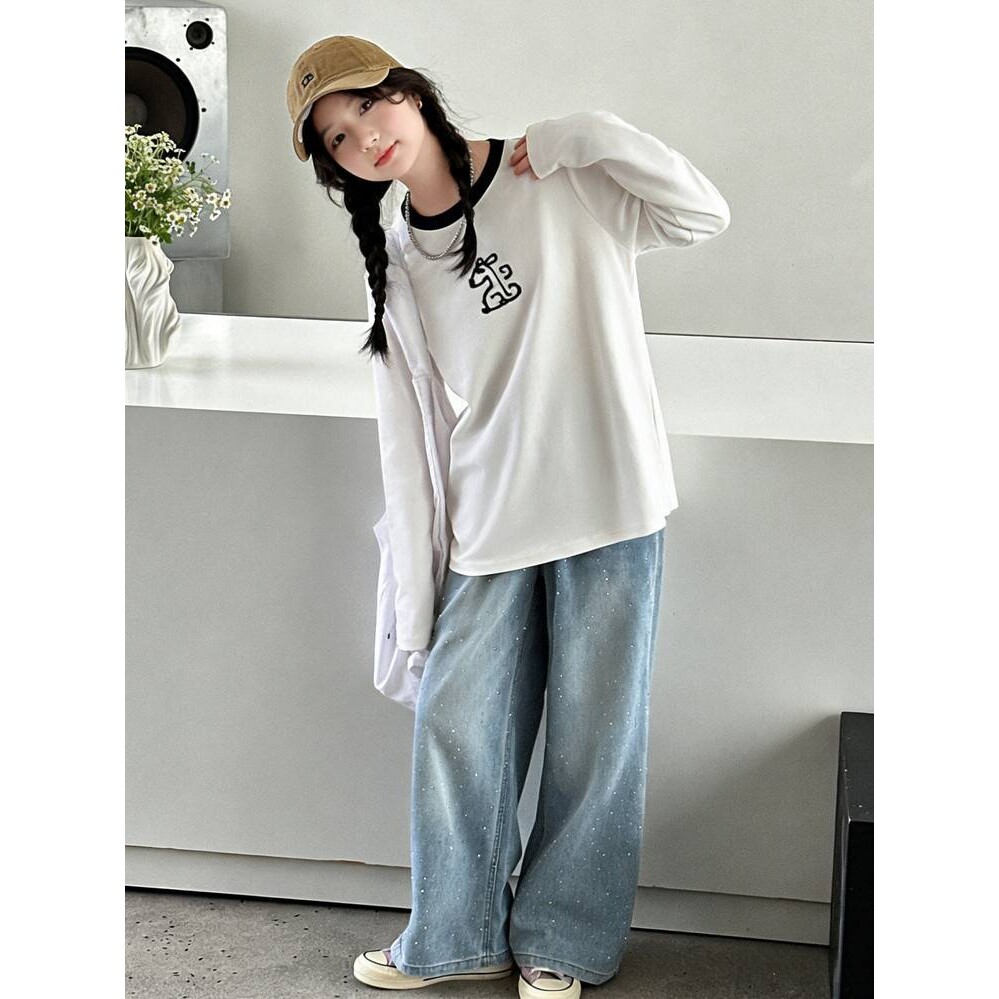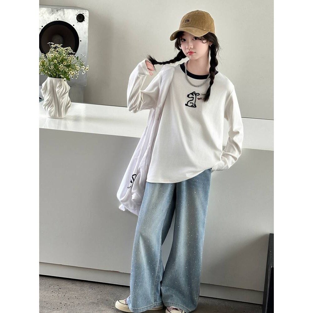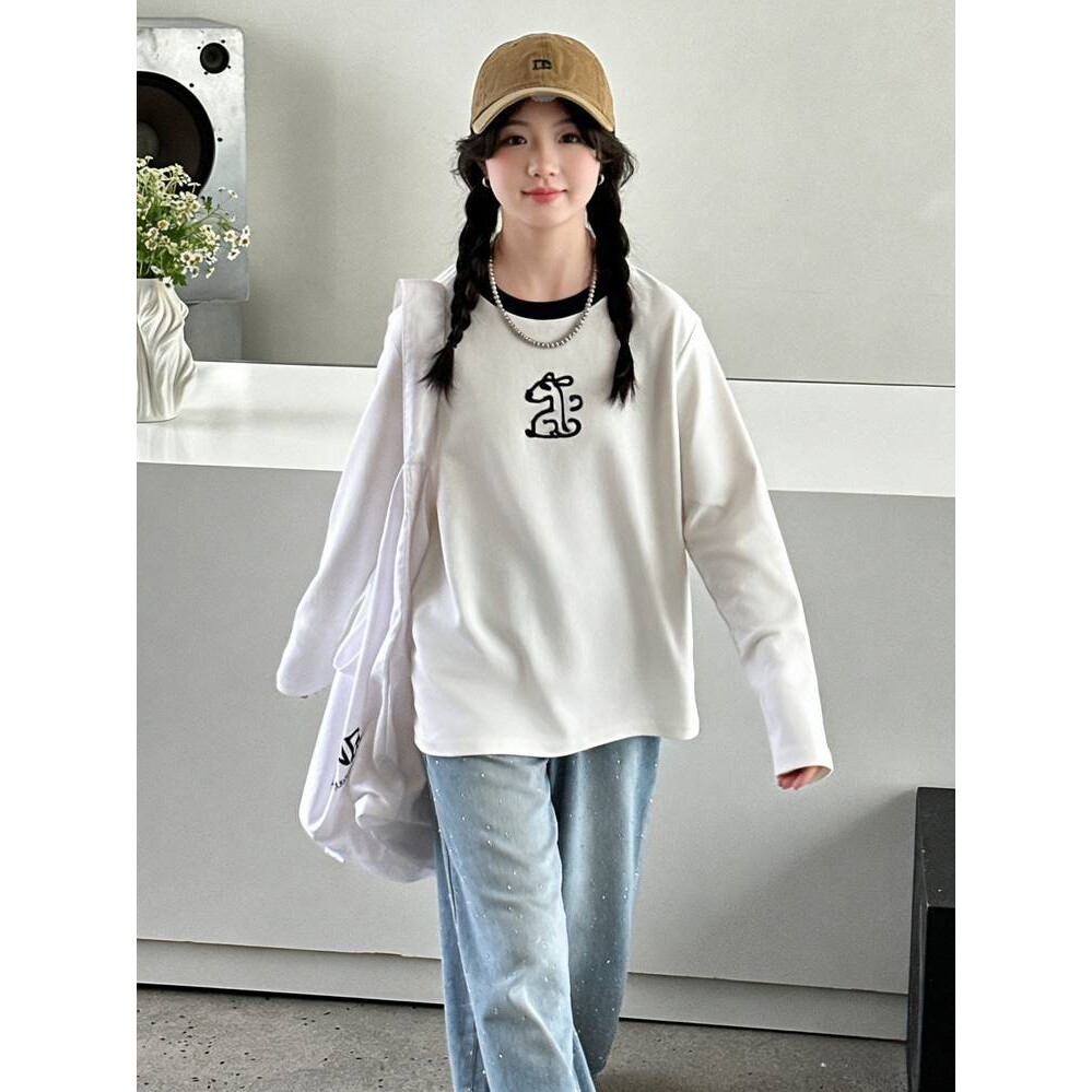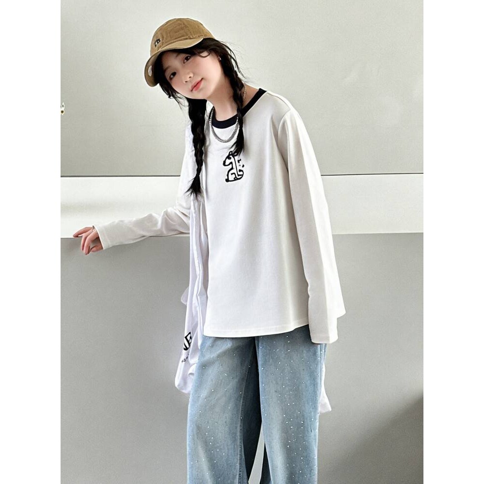 官方品牌女童薄款白色T恤2026新款大长袖初中生女孩打底衫青少年