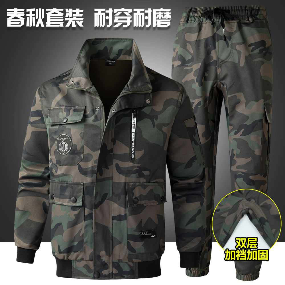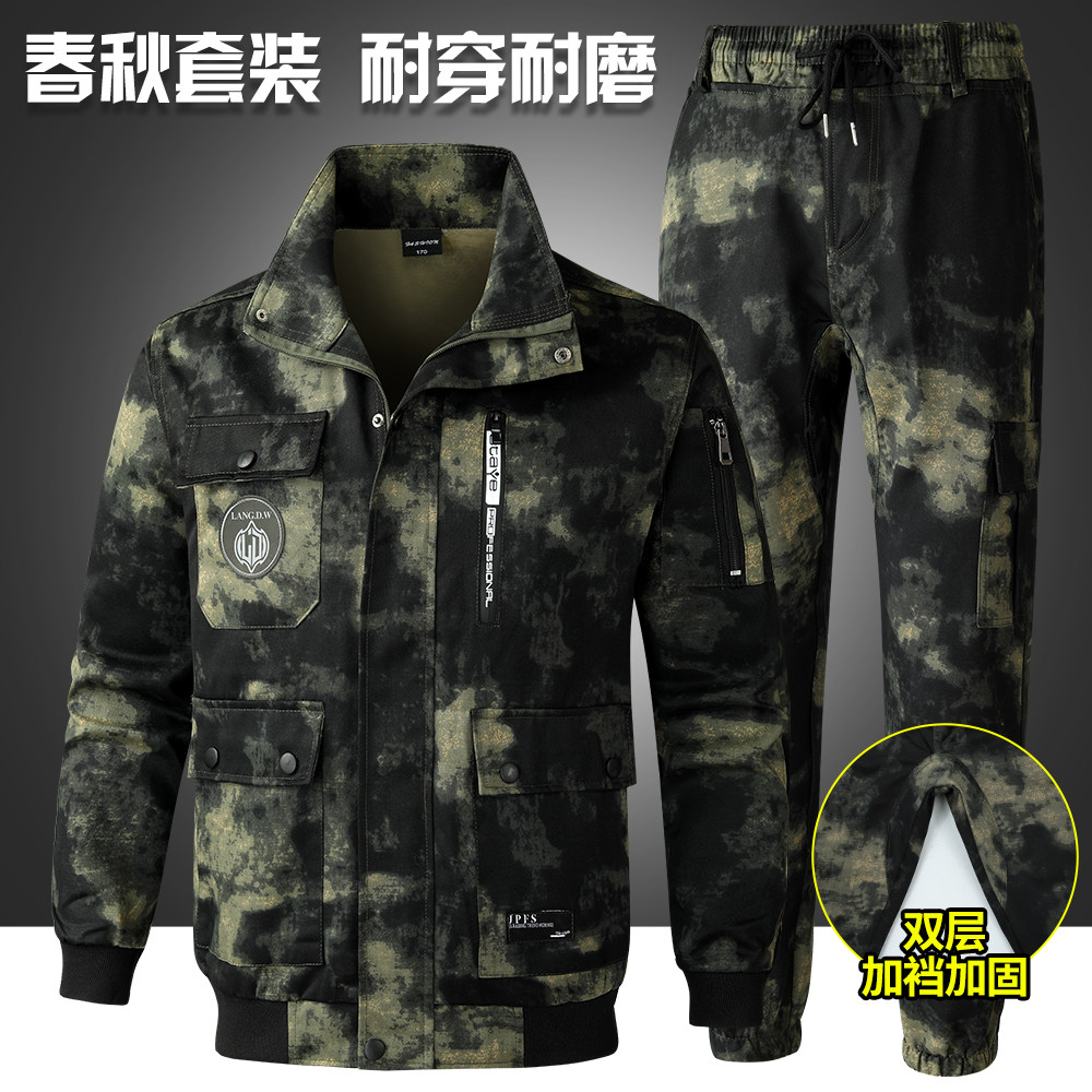春秋迷彩服套装男耐脏耐磨建筑工作服工地车间维修劳保服户外工装