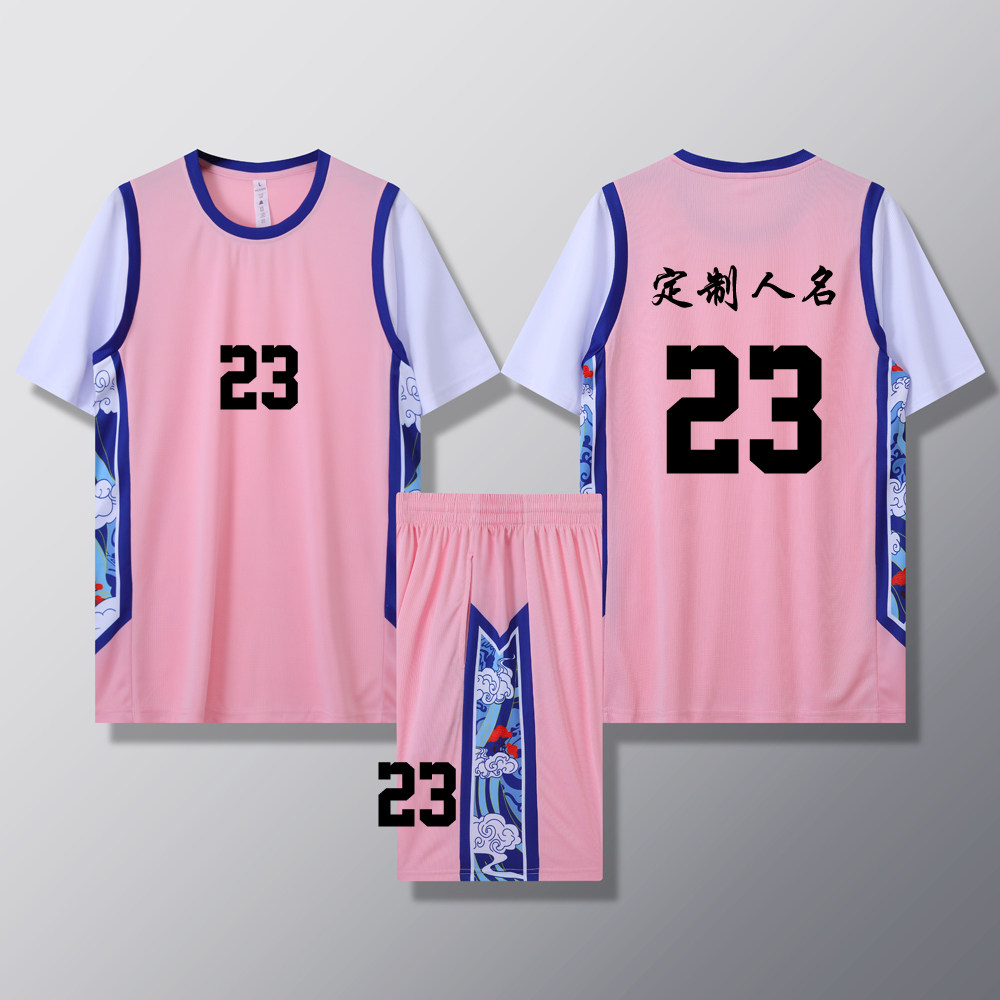 女款女生女童学生假两件短袖篮球服运动健身套装定制印刷B003粉色