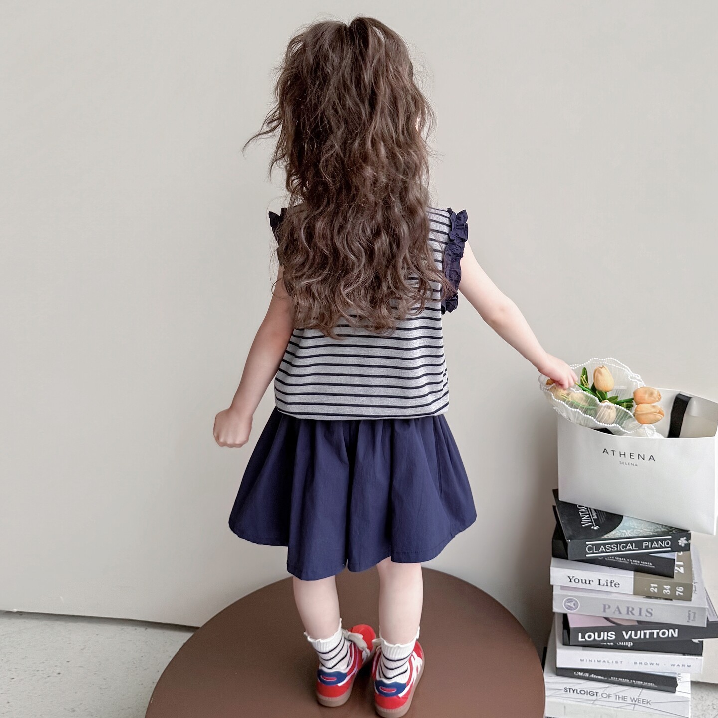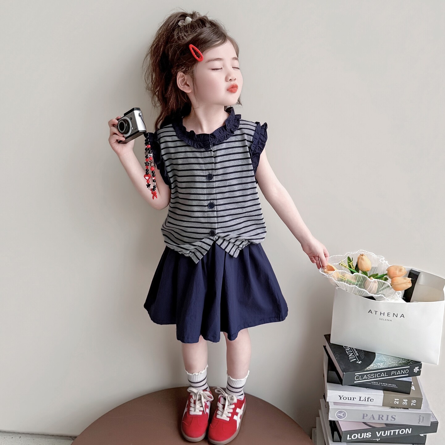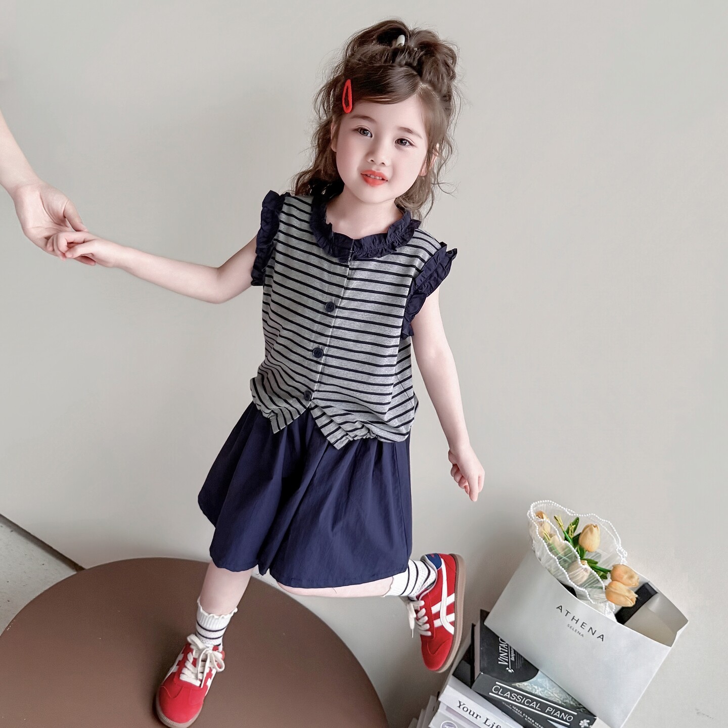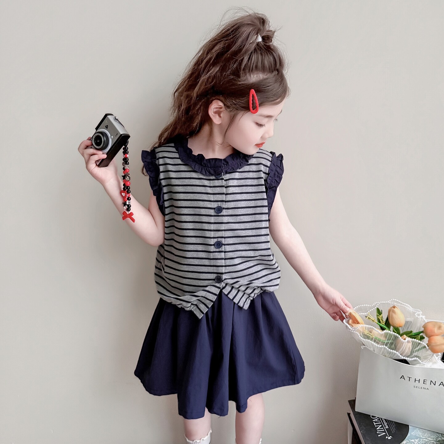 女童夏套装2026新款女孩夏季木耳边条纹上衣超好看儿童薄款裙裤子