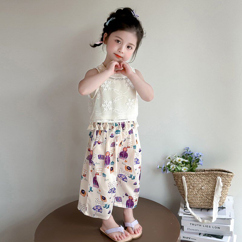 女童薄款套装夏装儿童超好看韩系背心洋气裤子网红炸街阔腿裤童装