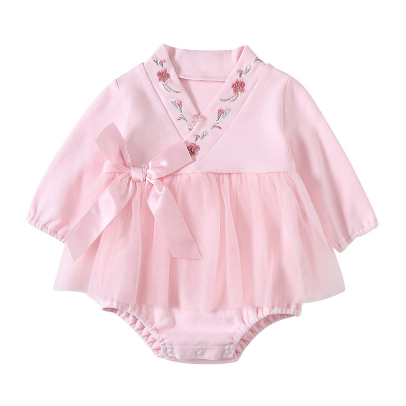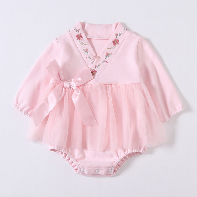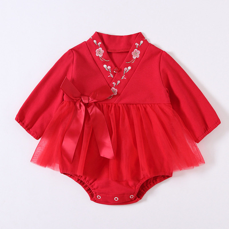女童汉服日常可穿春装新中式风女宝抓周旗袍礼服周岁裙子春秋红色