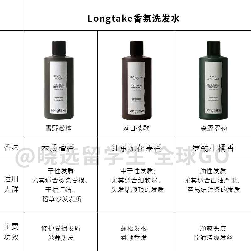 韩国LONGTAKE雪野松檀香氛洗发水控油蓬松持久柔顺落日茶歇护发素