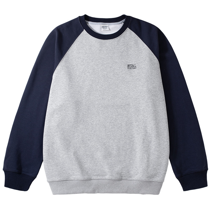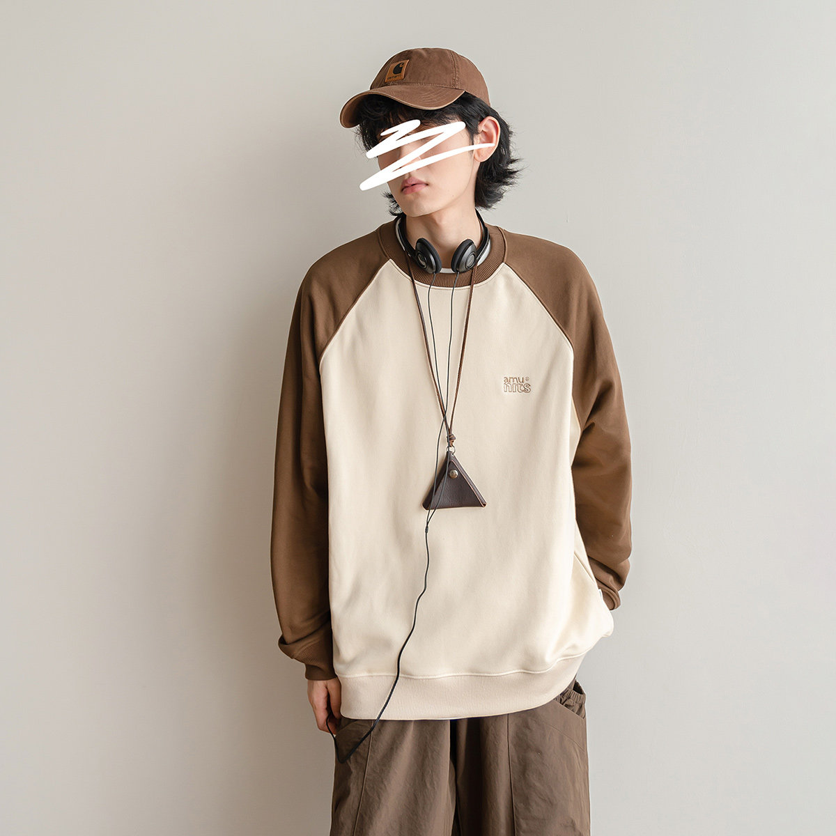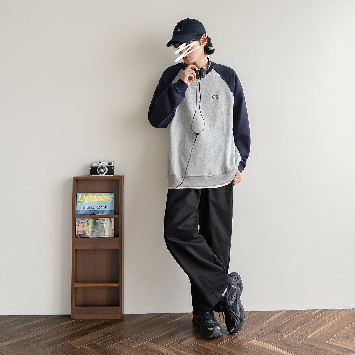 苏打汽水工作室春季休闲圆领拼接美拉蓝穿搭卫衣男女款插肩袖外套