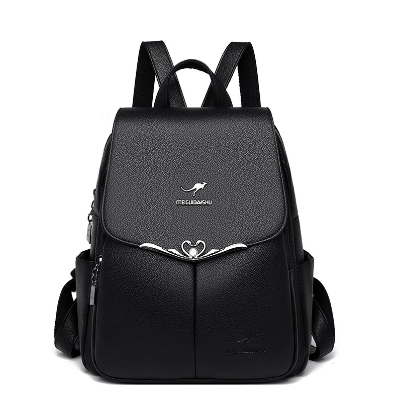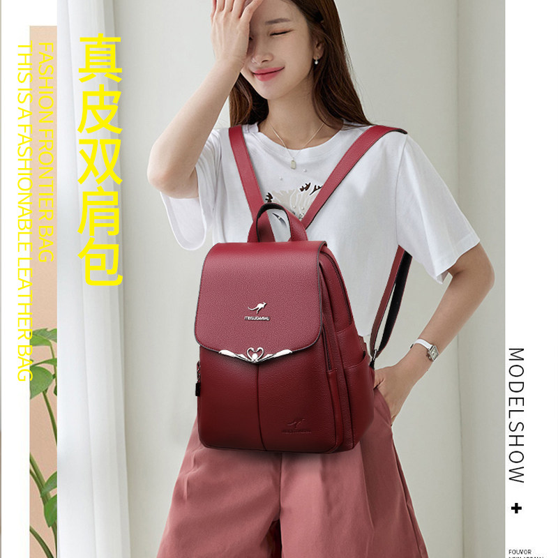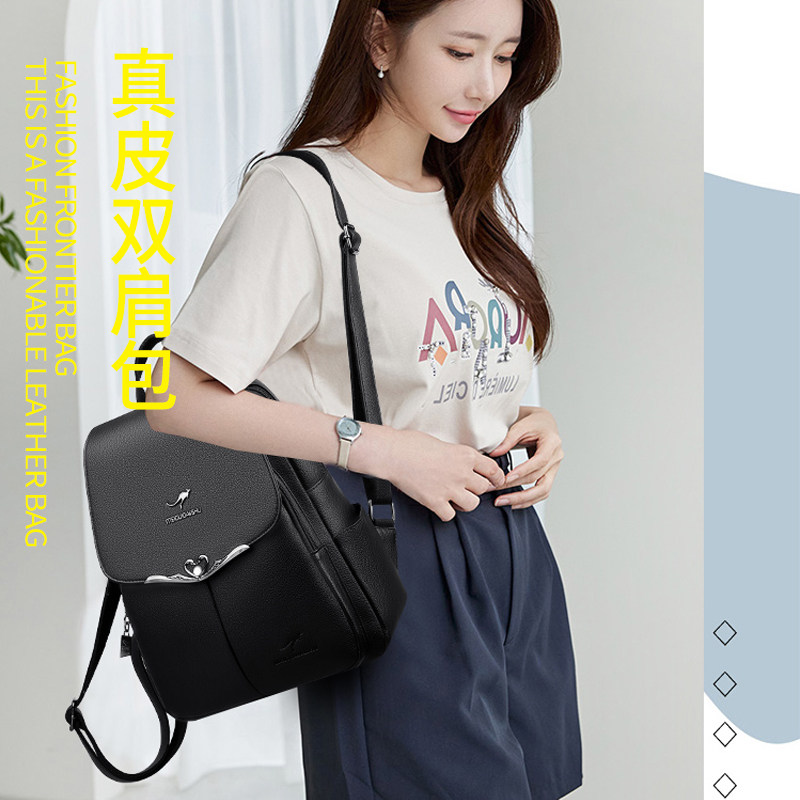 正品袋鼠真皮双肩包女2025新款旅行大容量女包软牛皮背包休闲百搭