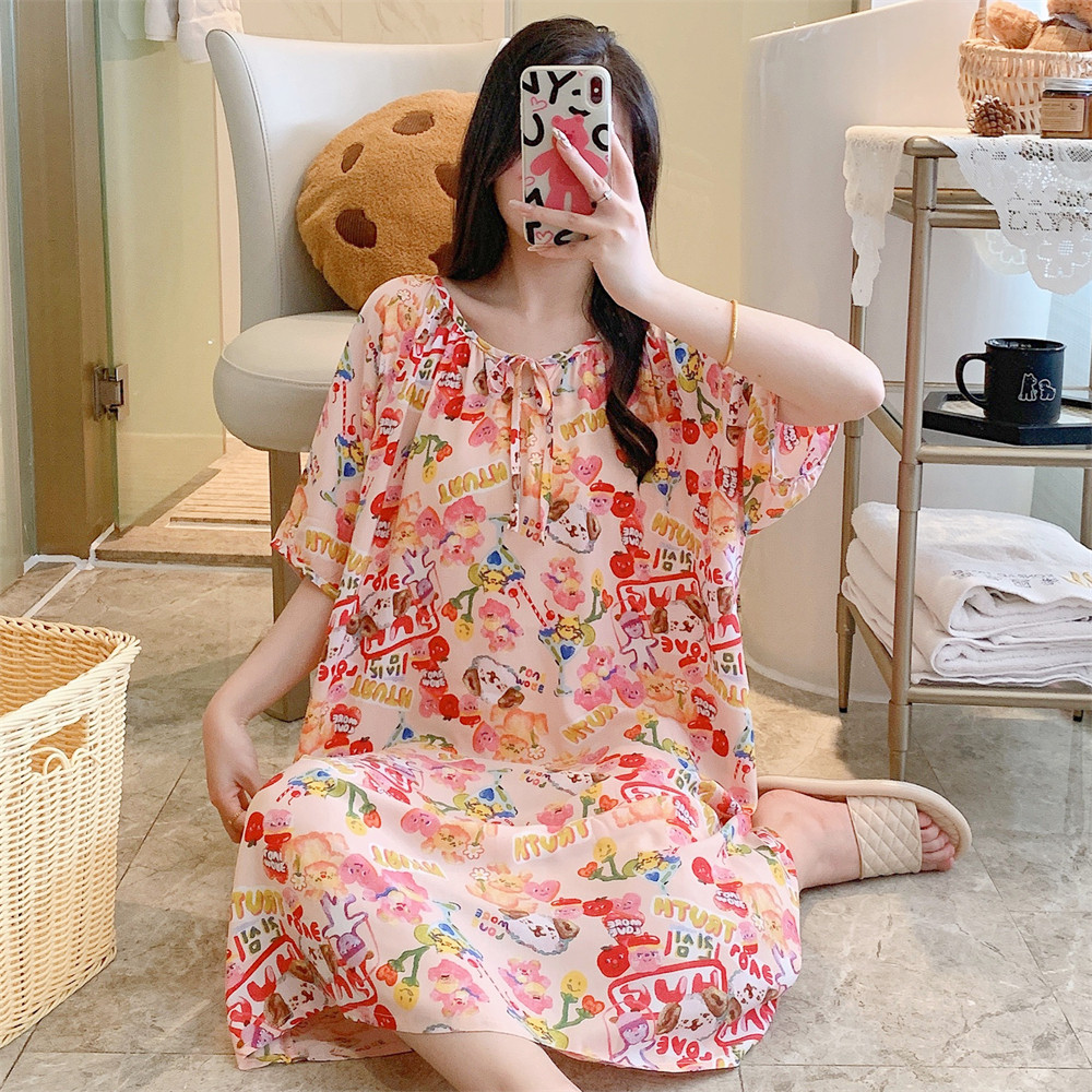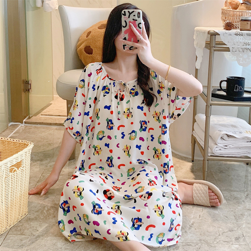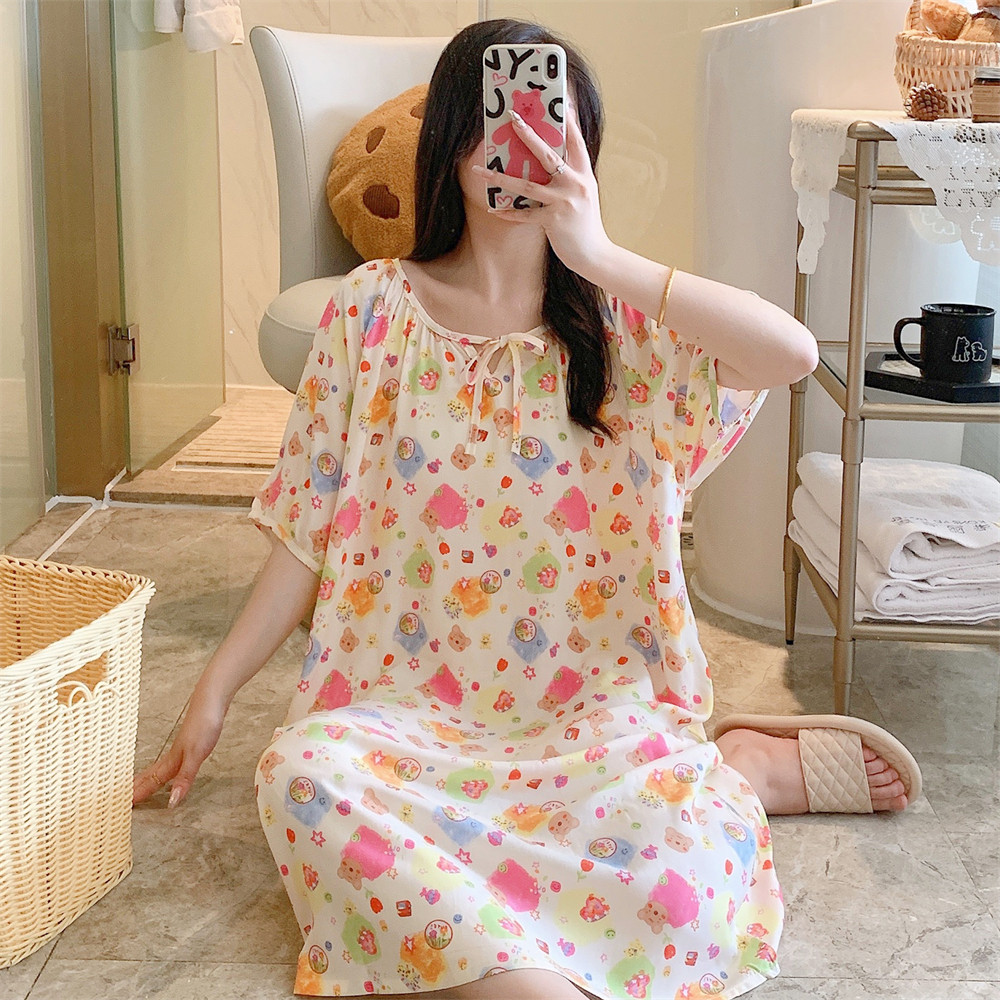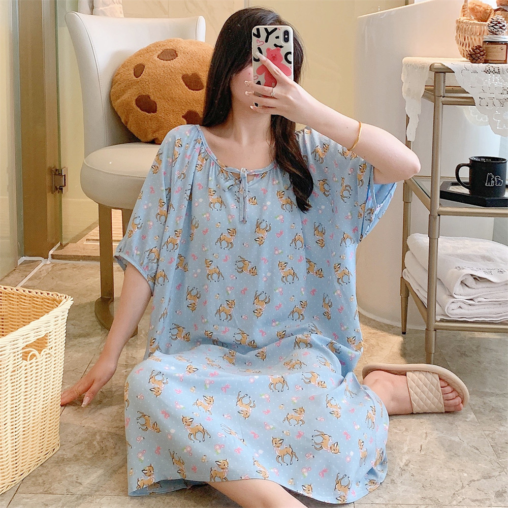 新款睡裙女纯棉绸人造棉绸可外穿加大码宽松韩版连衣裙睡衣家居服