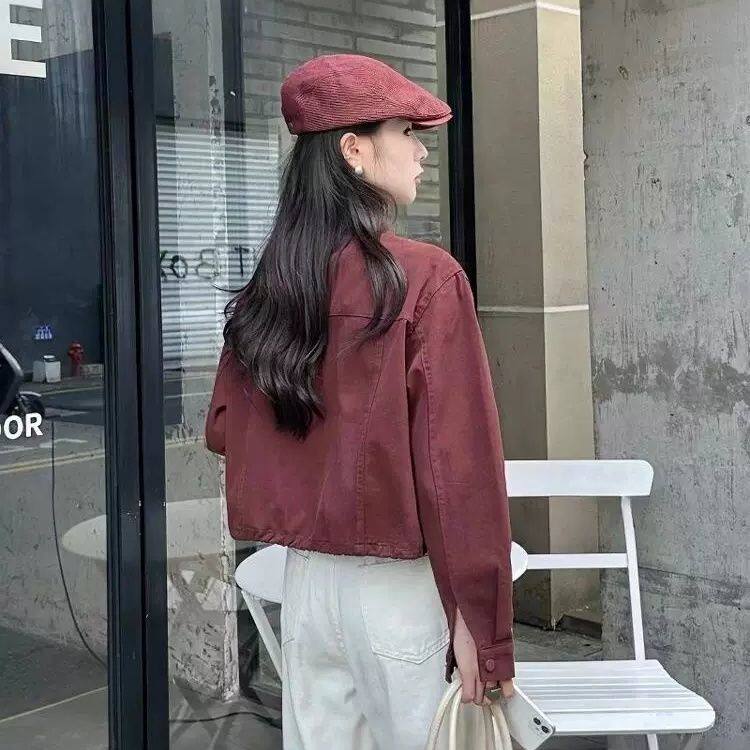 红色牛仔外套女春款新款2026韩版宽松休闲百搭短款牛仔上衣显瘦