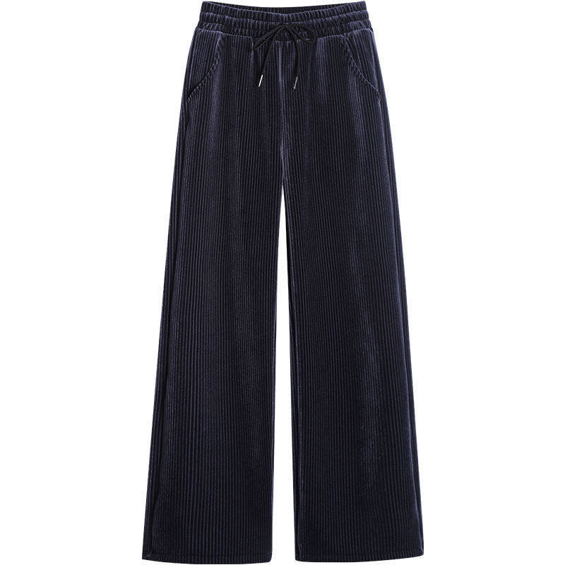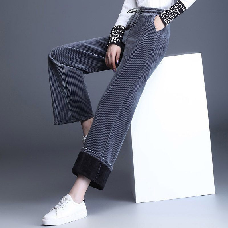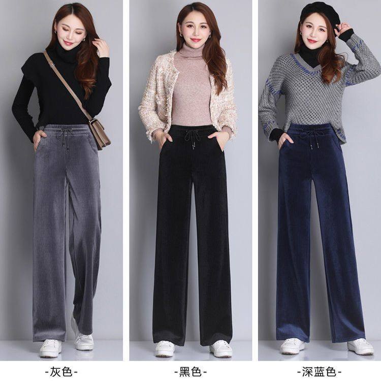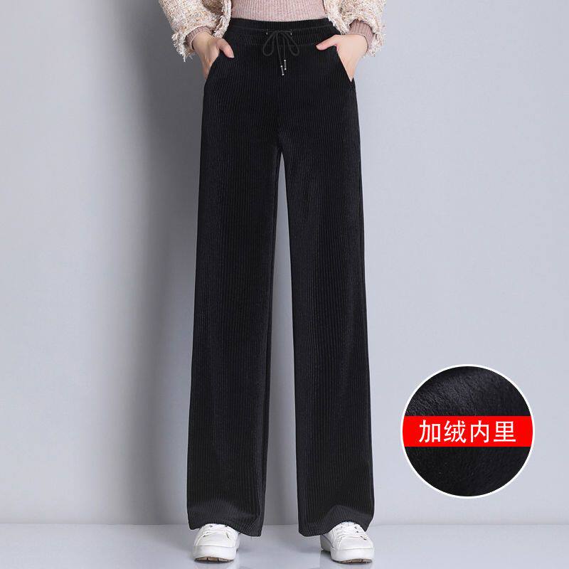 秋冬季高腰灯芯绒阔腿裤子女休闲大码加绒加厚宽松显瘦直筒长裤女