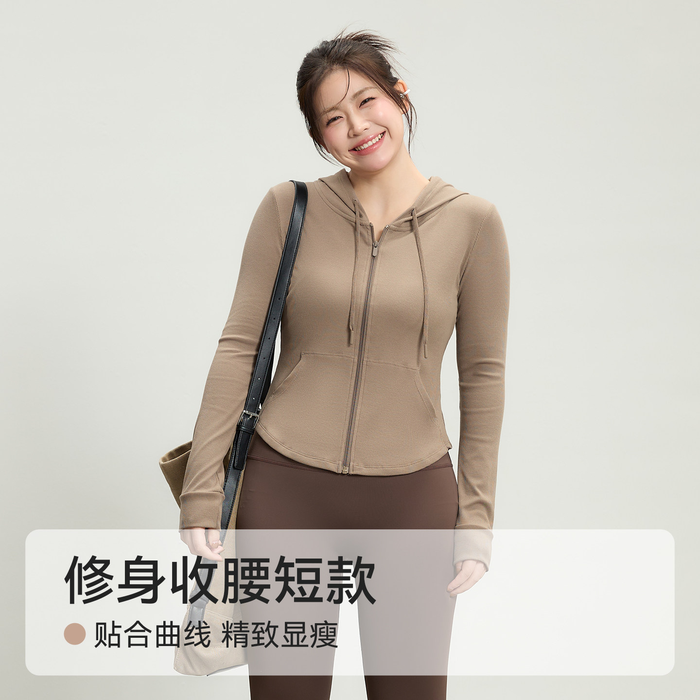 大码运动外套女胖mm2026春季新款瑜伽服修身显瘦连帽健身短款上衣