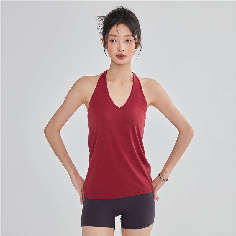 云端贝壳挂颈运动内衣女宽松外穿带胸垫瑜伽背心普拉提健身上衣新