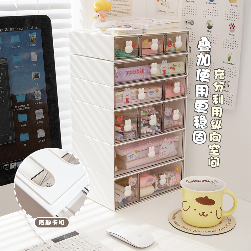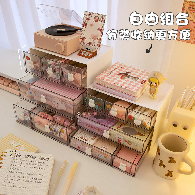 桌面收纳盒透明抽屉分隔笔筒柜学生办公书桌文具手帐整理箱置物架