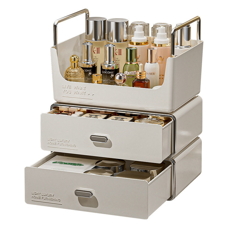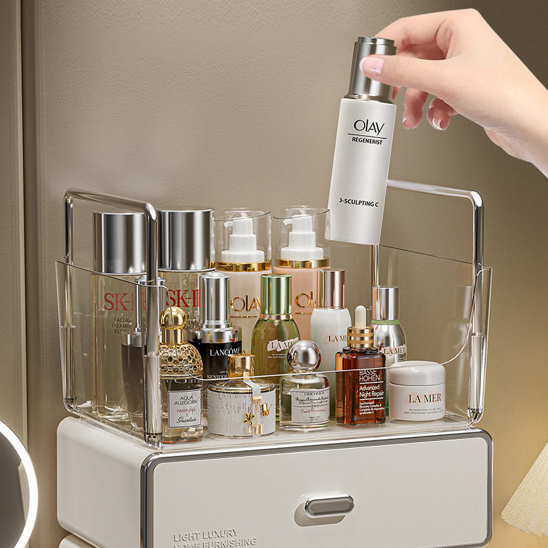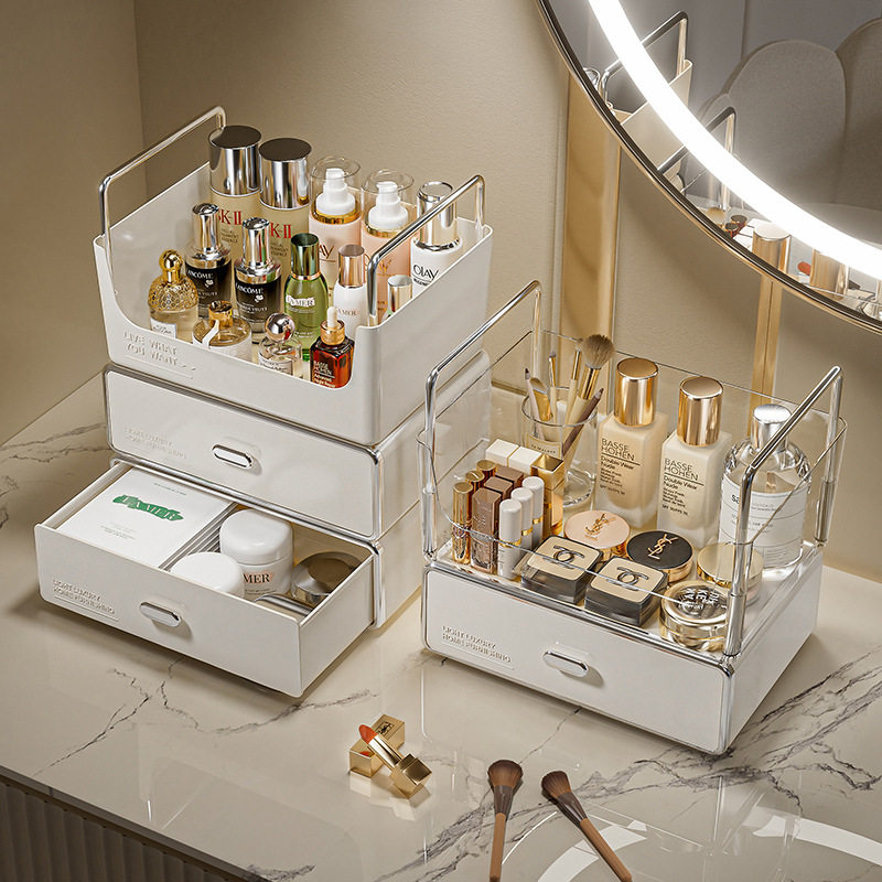 抽屉式化妆品收纳盒桌面梳妆台护肤品置物架透明亚克力储物整理盒
