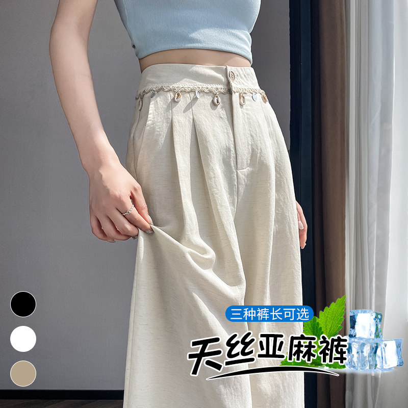 卡其色阔腿天丝牛仔裤女2026夏季新款薄款小个子垂感高级感直筒裤