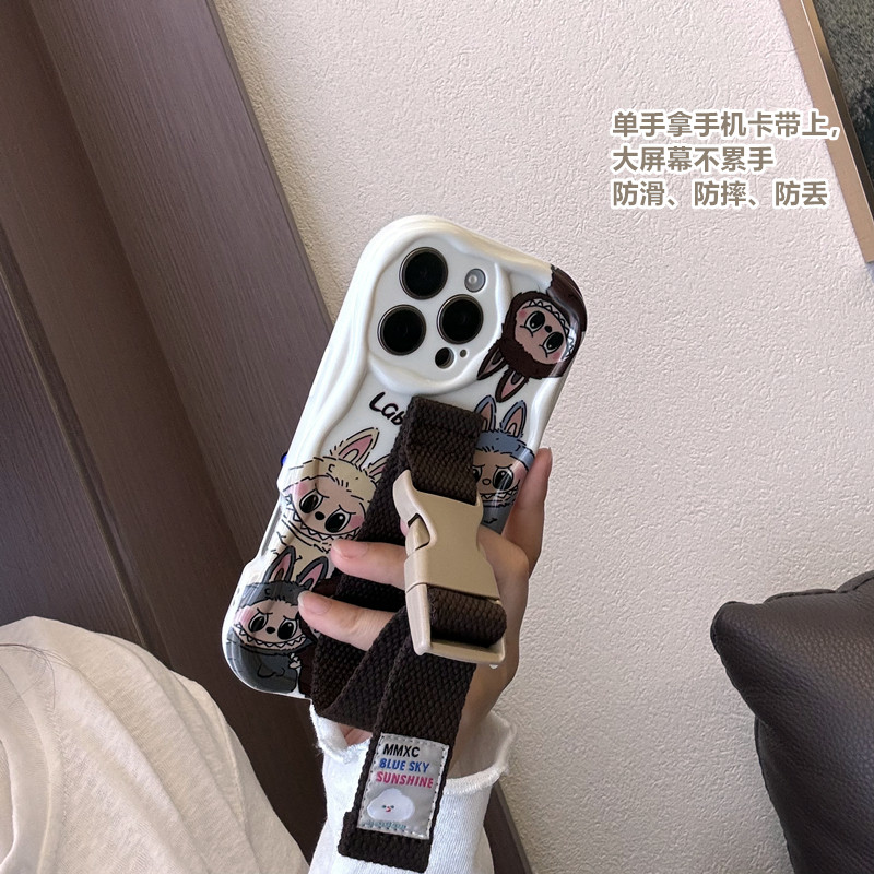 潮牌拉布布适用苹果17 16 15 14Pro Max手机壳腕带iPhone13支架华为mate60 70 pura70小米15透明卡通定制型号