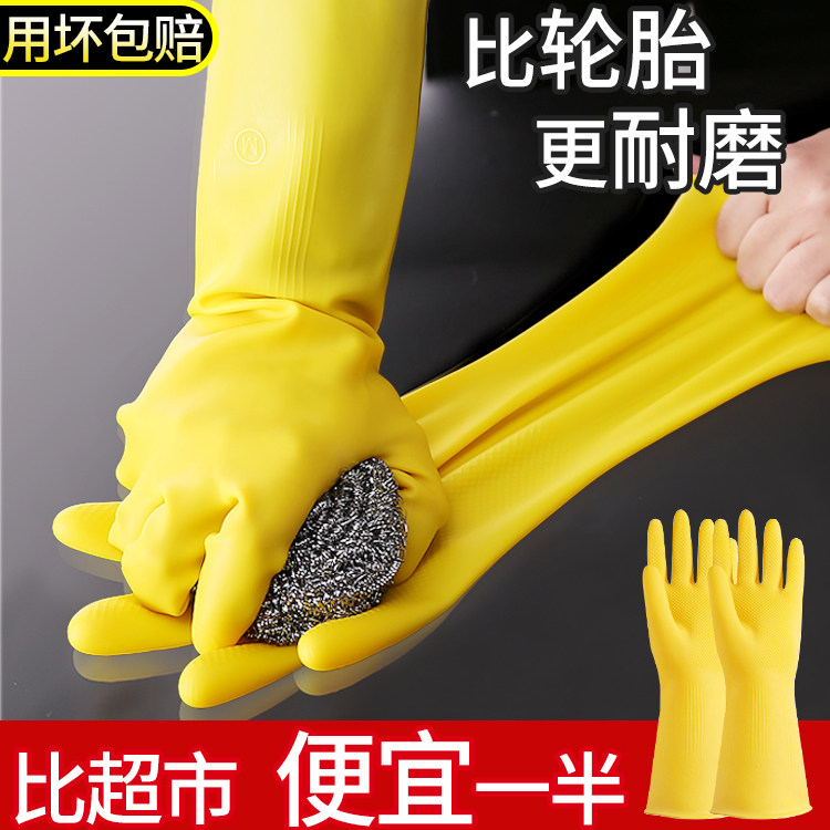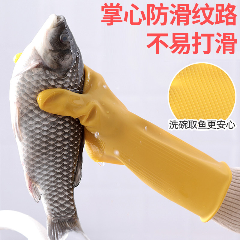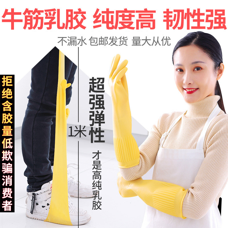 加厚橡胶洗碗手套加长款男女乳胶皮牛筋劳保耐磨防水工作厨房家用